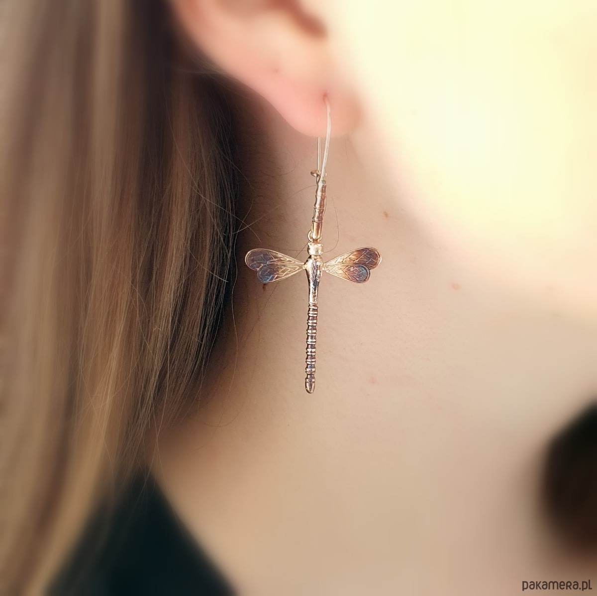 Długość kolczyków 6,2 cm, szerokość skrzydełek 2,8 cm. Długość samych ważek 3,2 cm. Waga: 5,3 gr.