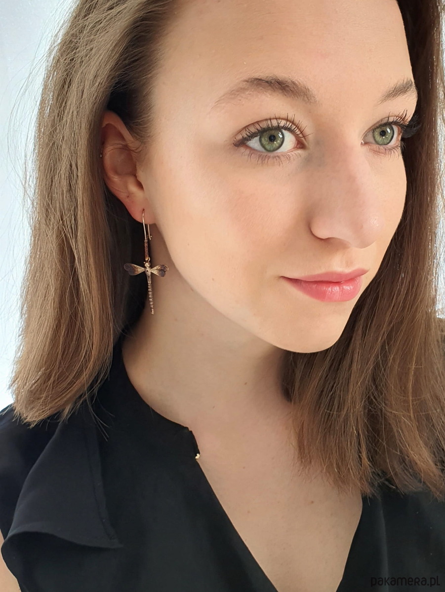 Długość kolczyków 6,2 cm, szerokość skrzydełek 2,8 cm. Długość samych ważek 3,2 cm.