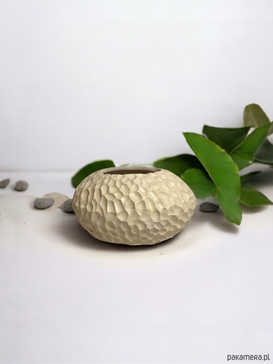 Jego kształt i subtelne kolory sprawiają, że idealnie pasuje do różnych wnętrz. Może być umieszczony na stole, komodzie, półce czy też na parapecie.
