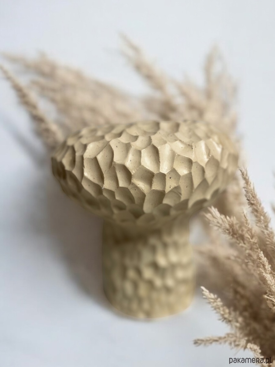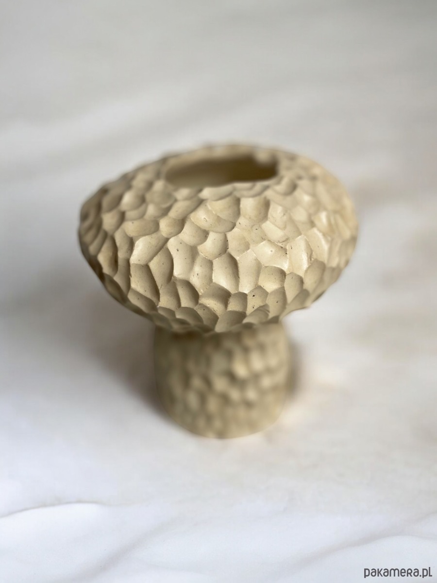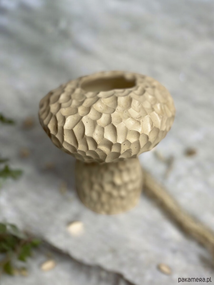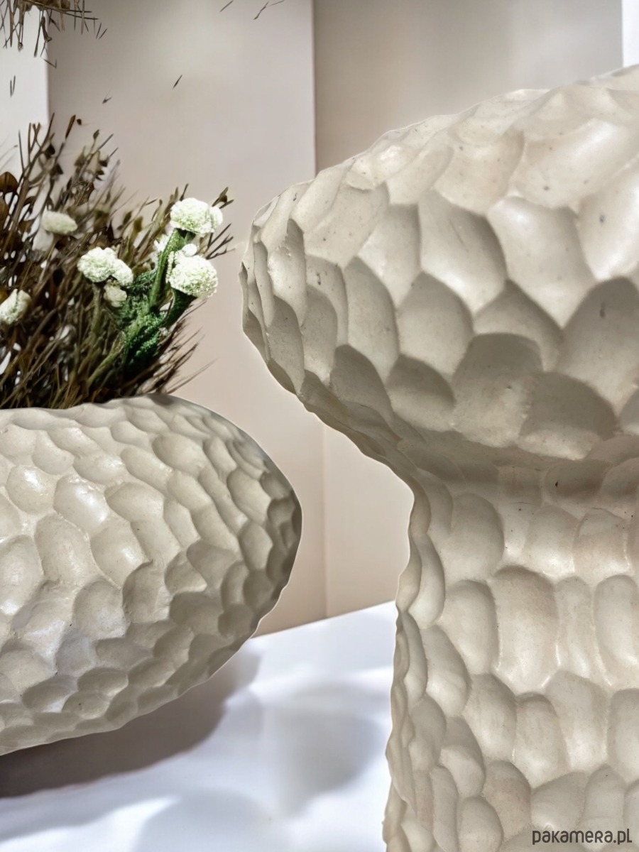 Jego kształt i subtelne kolory sprawiają, że idealnie pasuje do różnych wnętrz. Może być umieszczony na stole, komodzie, półce czy też na parapecie.