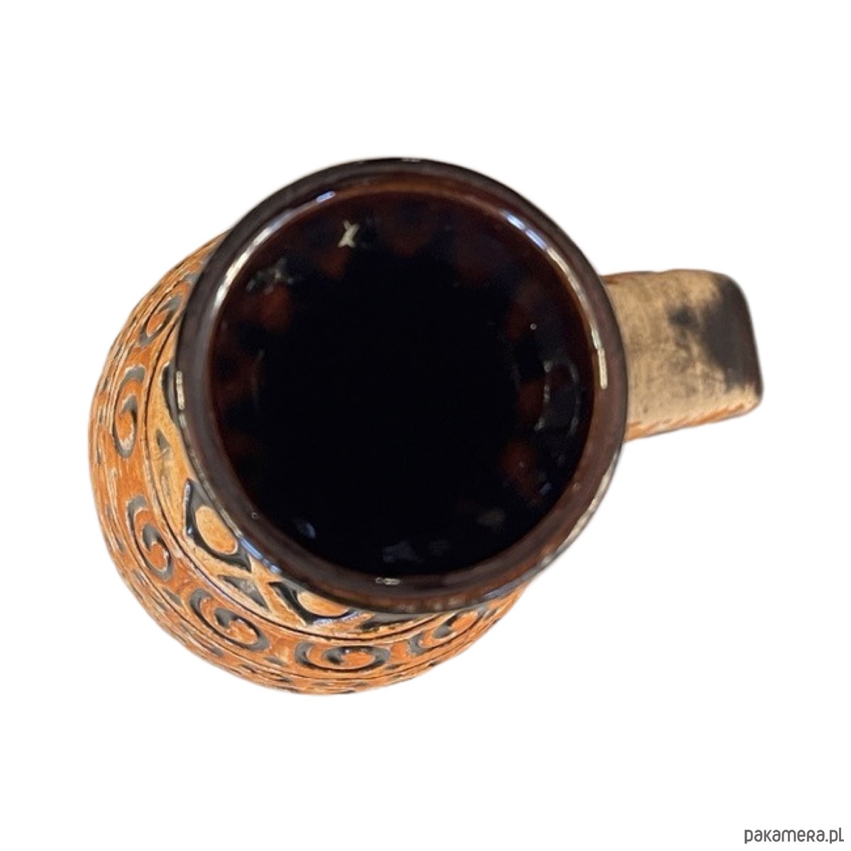 Glazura w kolorze ochry, z kilkoma czarnymi paskami. Zobacz zdjęcia.