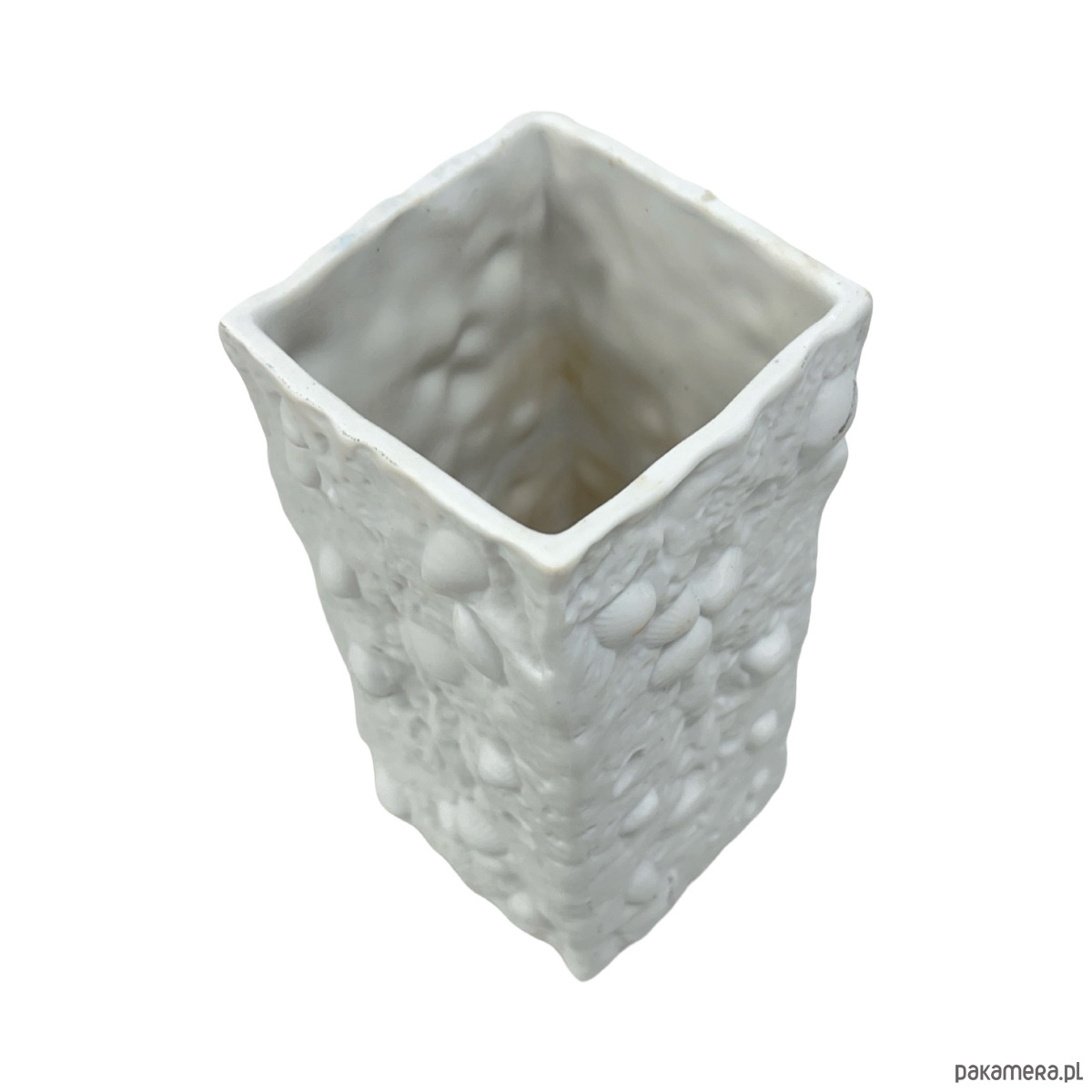 kolekcjonerski wazon wykonany z wysokiej jakości białej, nieszkliwionej porcelany biskwitowej. Pochodzi z cenionej niemieckiej manufaktury Ilmenau (Metzler & Orloff), wyprodukowany w latach 70. XX wieku.
