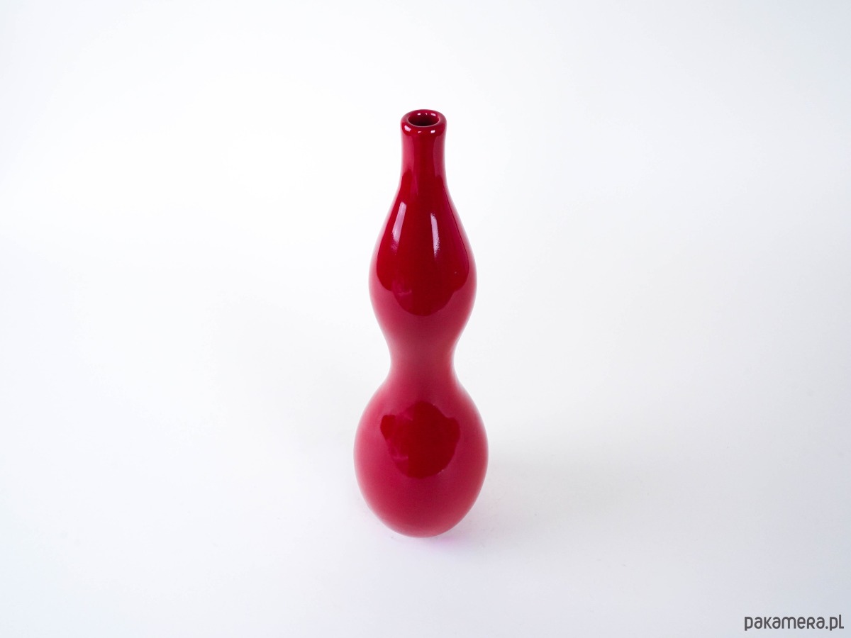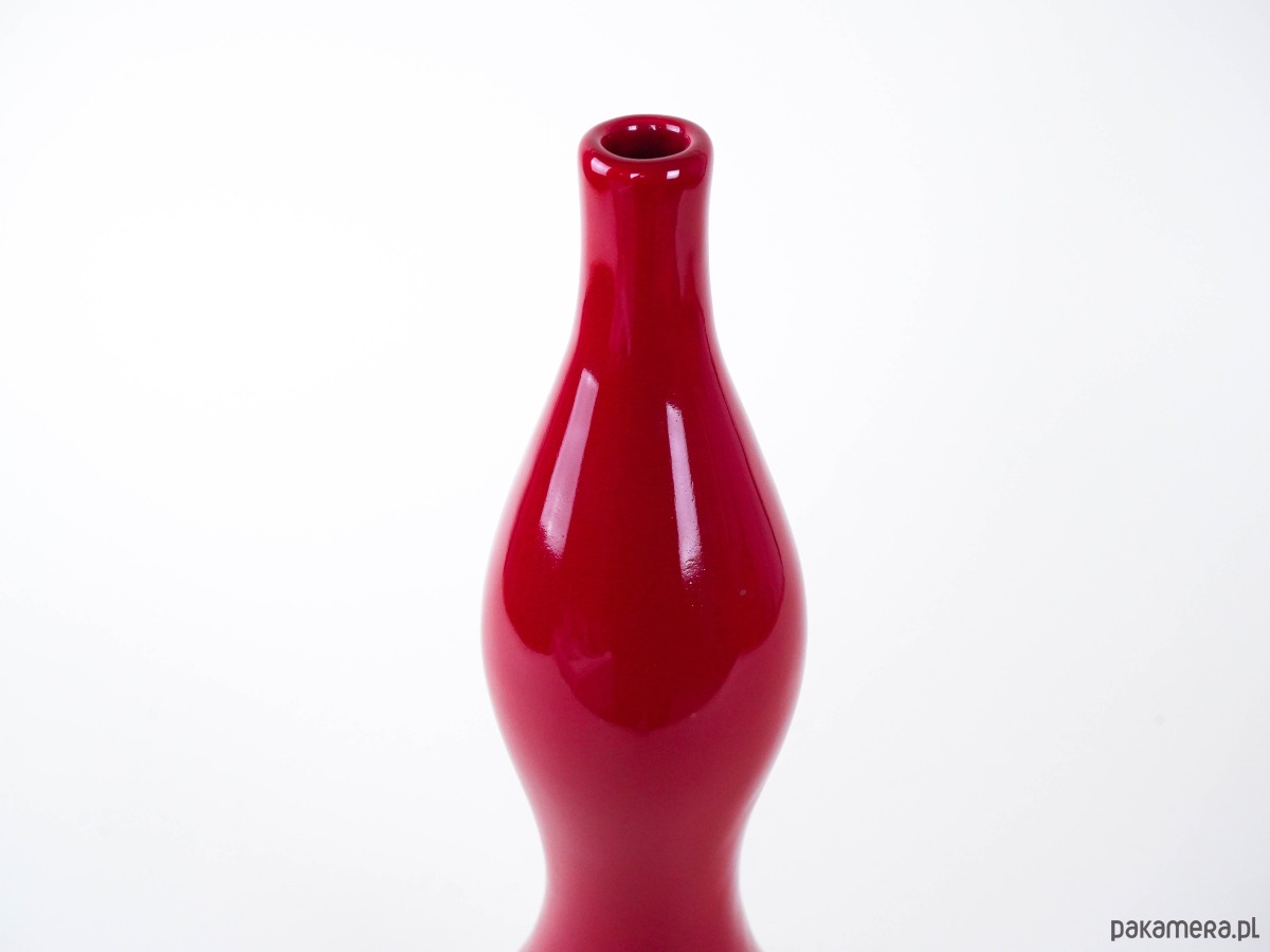Czerwony ceramiczny wazon wykonany został w latach 70-tych, produkcja duńska.