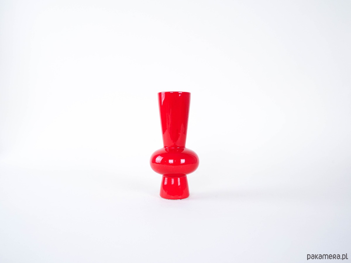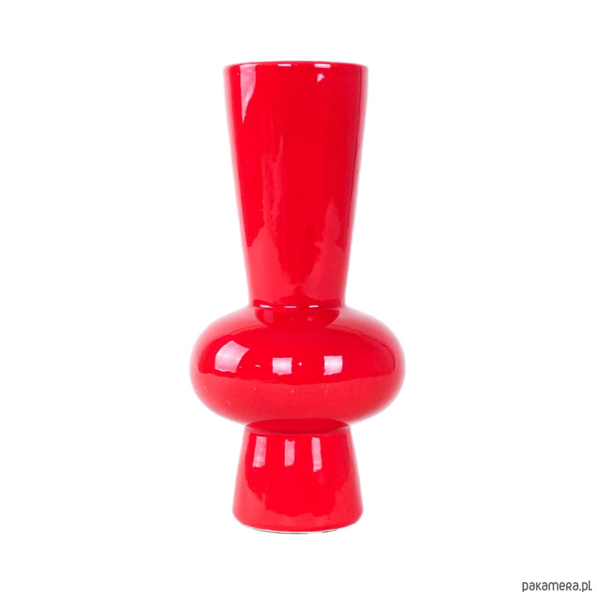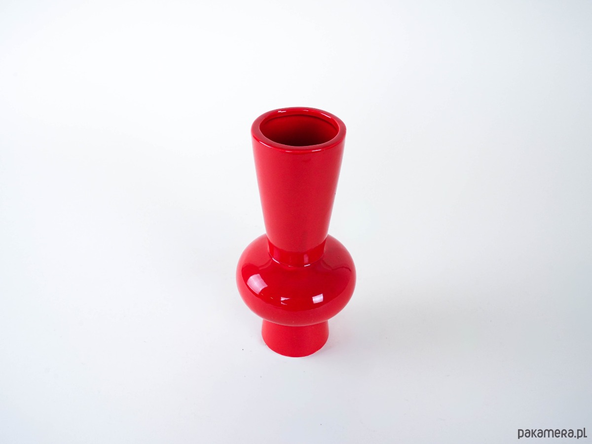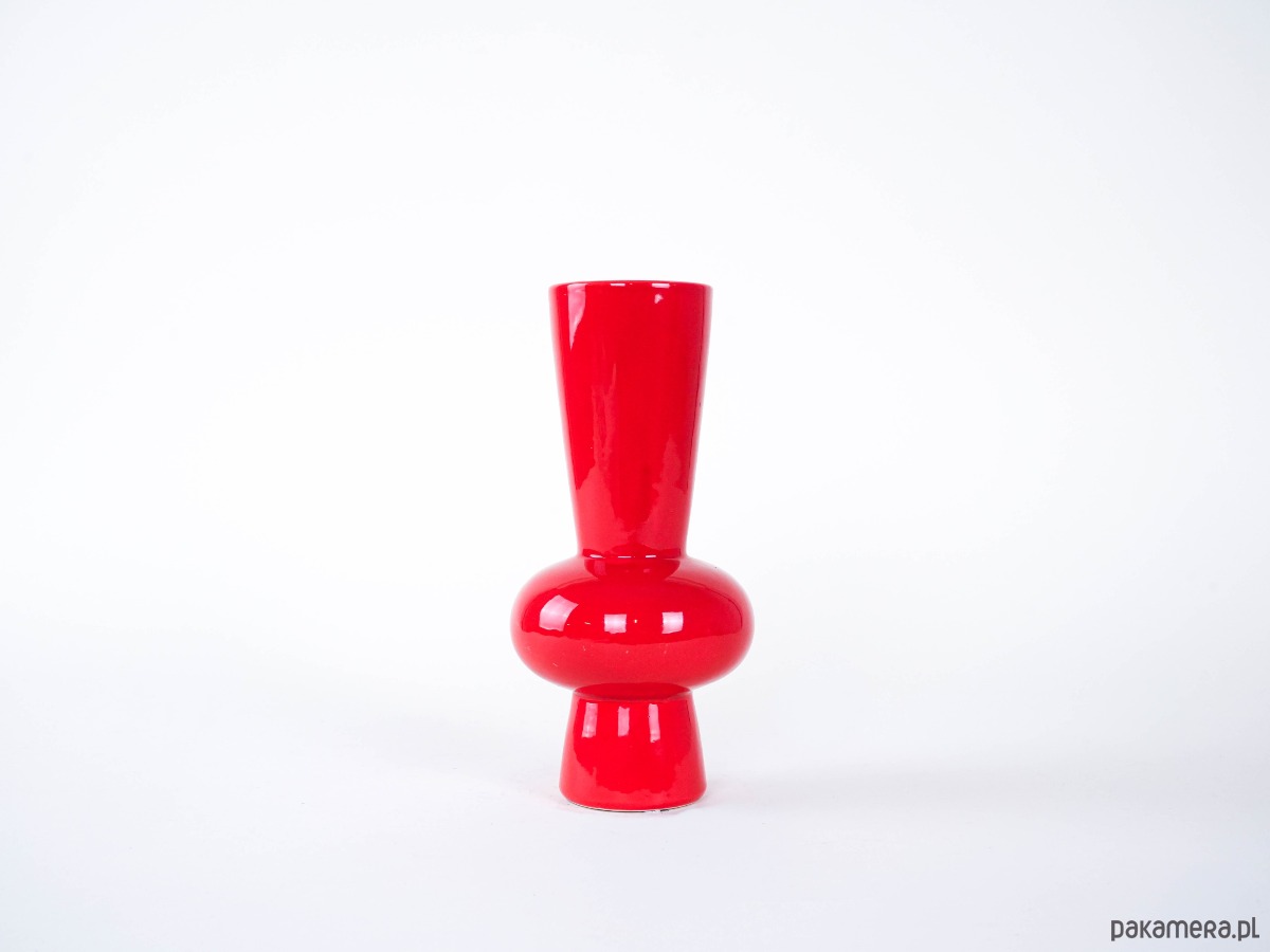Wyrazisty, geometryczny wazon w intensywnej czerwieni, inspirowany estetyką Mid-Century Modern. Organiczno-rzeźbiarska forma z mocnym akcentem pop dodaje wnętrzu odważnego charakteru. Idealny jako solowy element dekoracyjny lub na pojedyncze kwiaty – wprowadza do przestrzeni retro vibe w duchu lat 60. i 70.