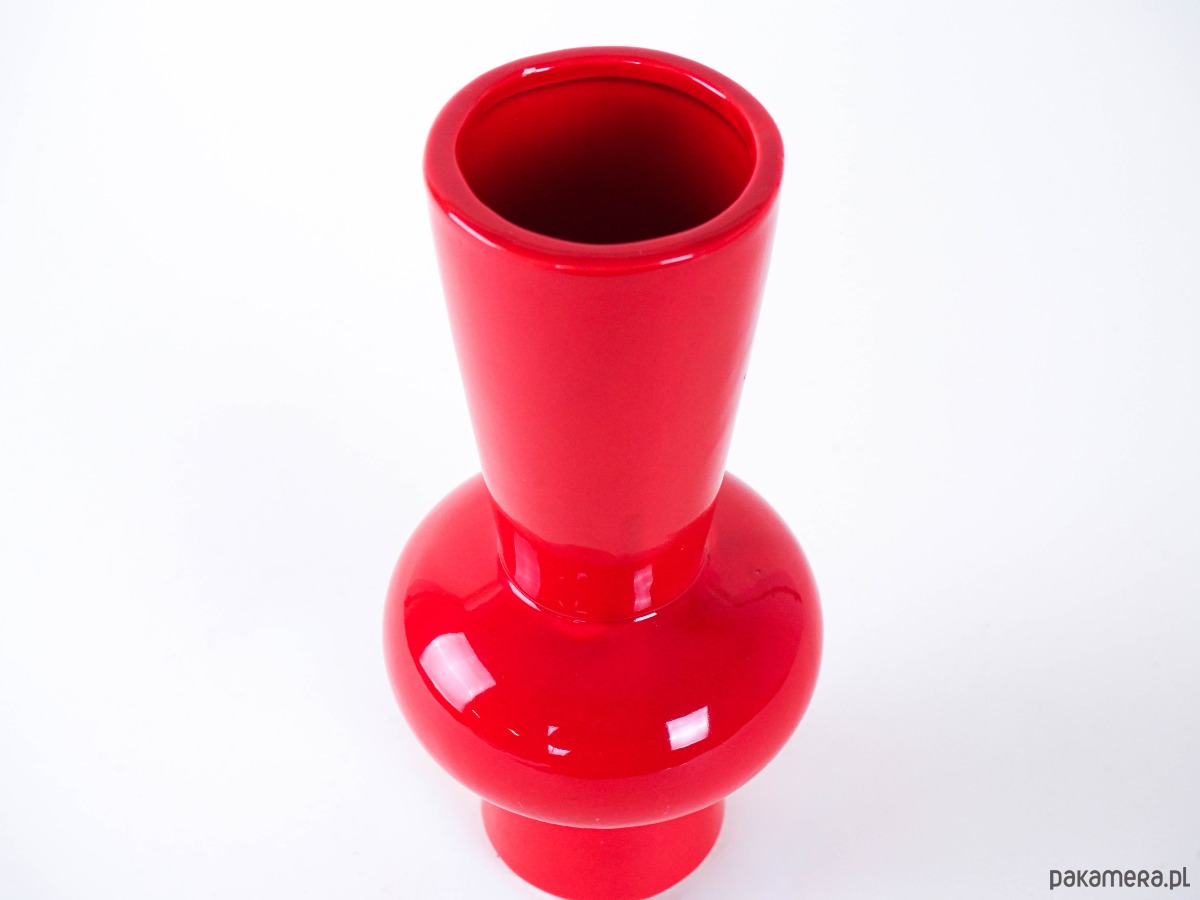 Czerwony ceramiczny wazon wykonany został w latach 70-tych, produkcja duńska.