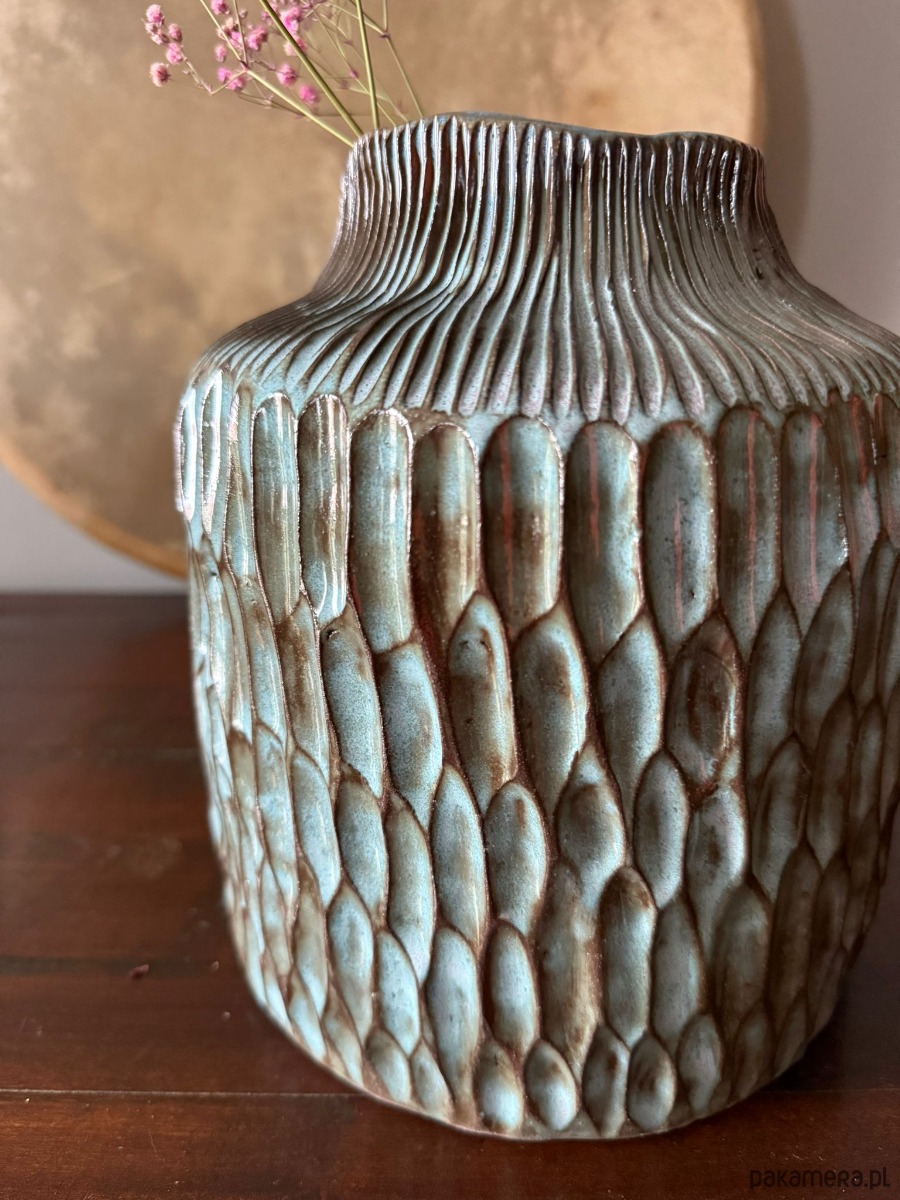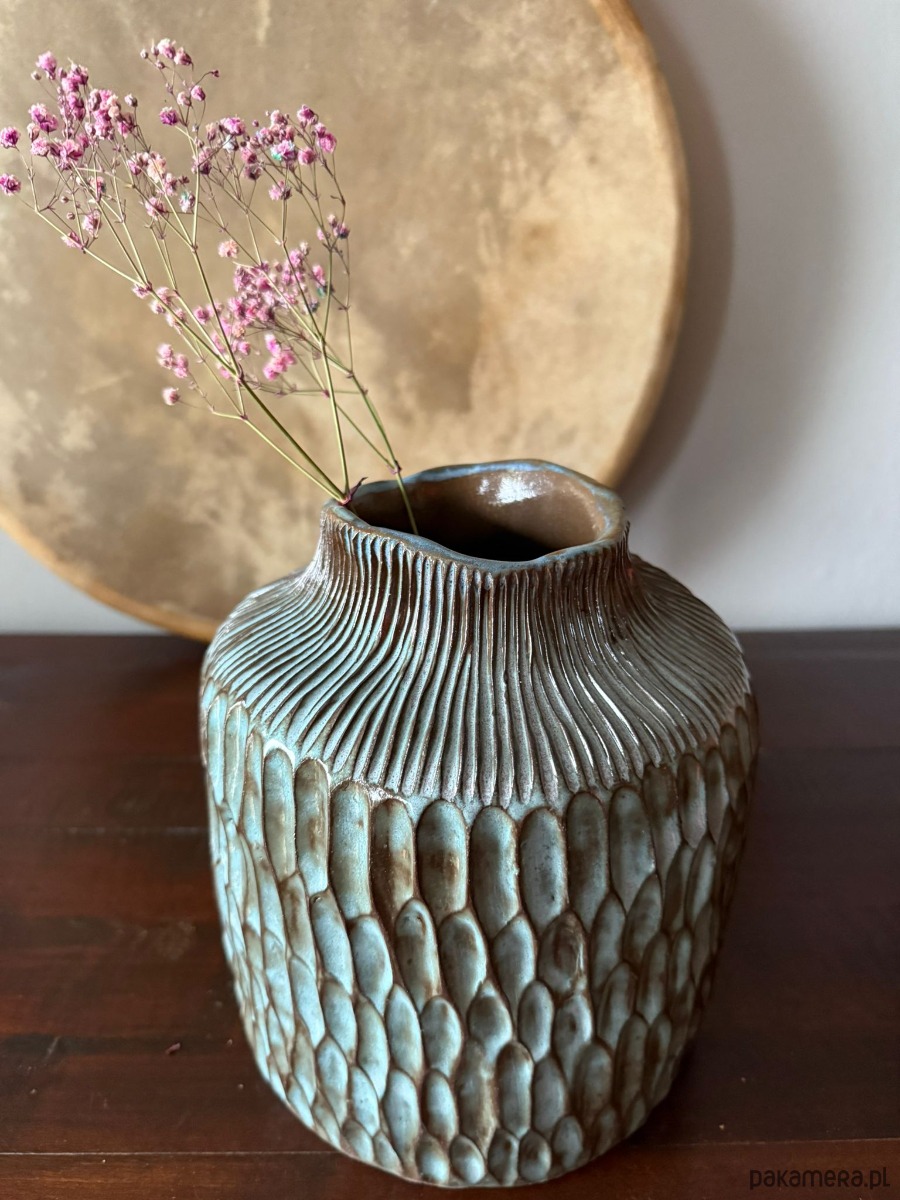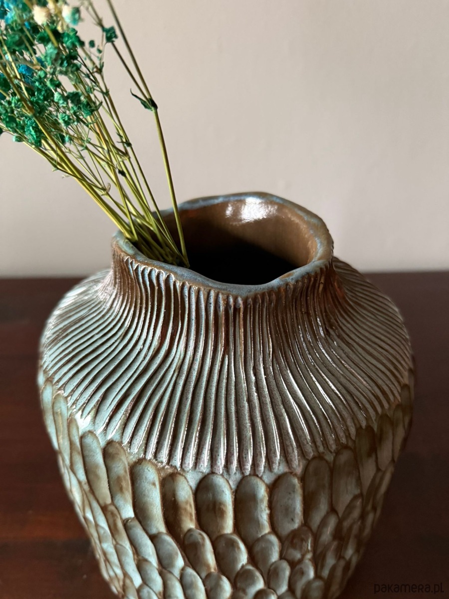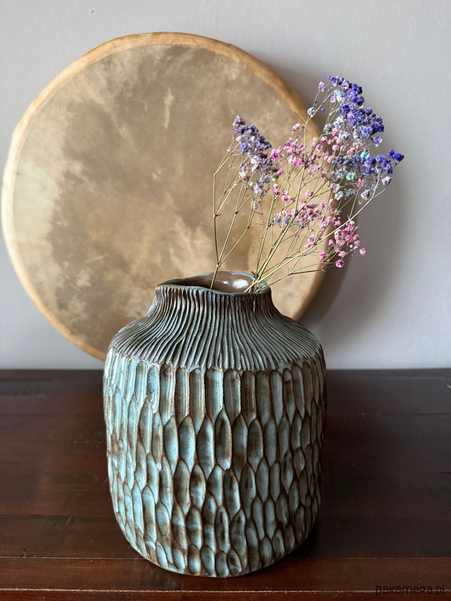 Idealny dla osób, które cenią rękodzieło, oryginalność i niepowtarzalny design. Wazon „Deep Line” to nie tylko przedmiot użytkowy, ale małe dzieło sztuki, które wnosi do wnętrza głębię i artystyczny klimat.