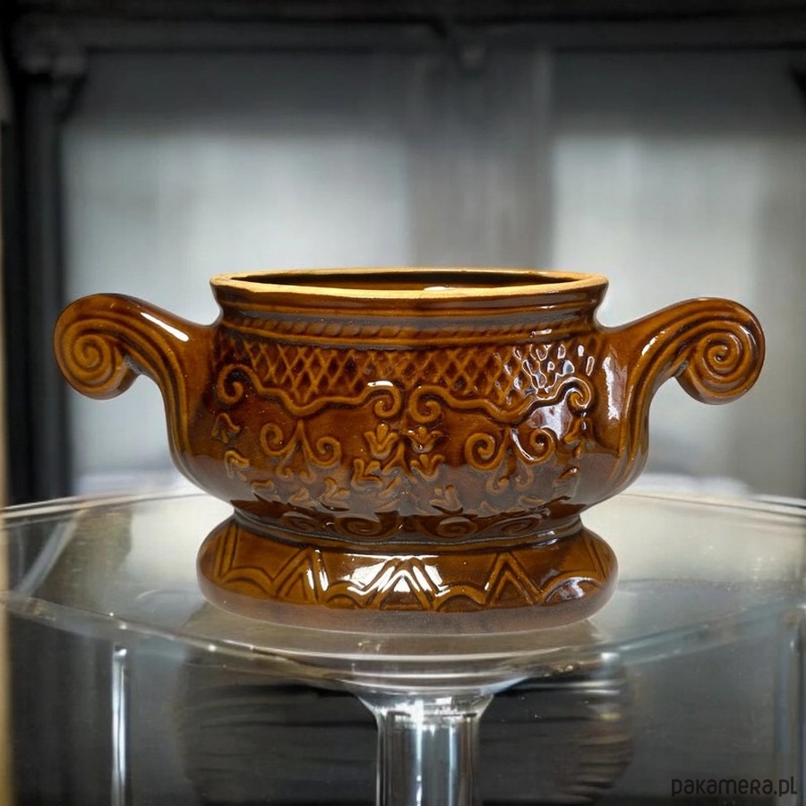 Wazon z kamionki z okresu PRL. Wymiary: wys. 12 x 25 x 7 cm. Stan bardzo dobry