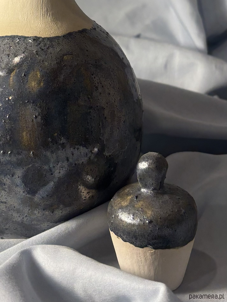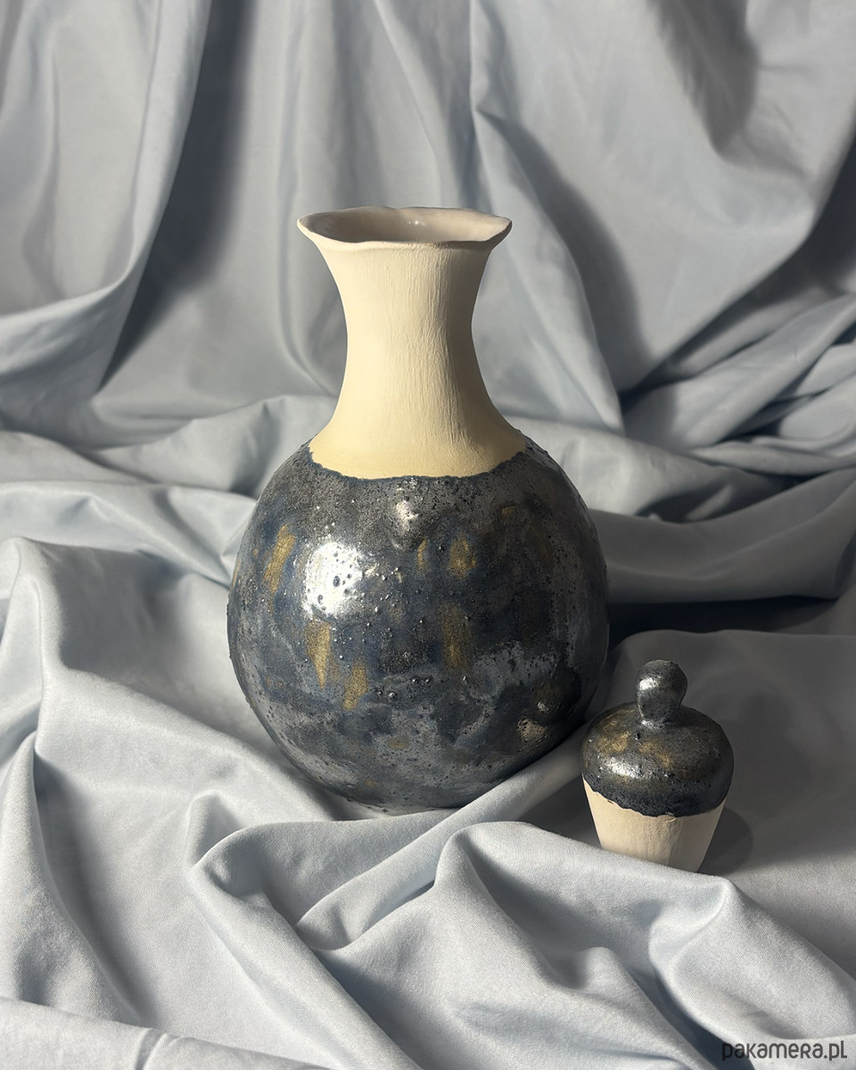 ¹ w związku z niską temperaturą wypału na szkliwo, wewnętrzna ekspozycja na płyny nie może być ciągła → po użyciu jako karafka, lub z żywymi kwiatami, odstawić do całkowitego wysuszenia