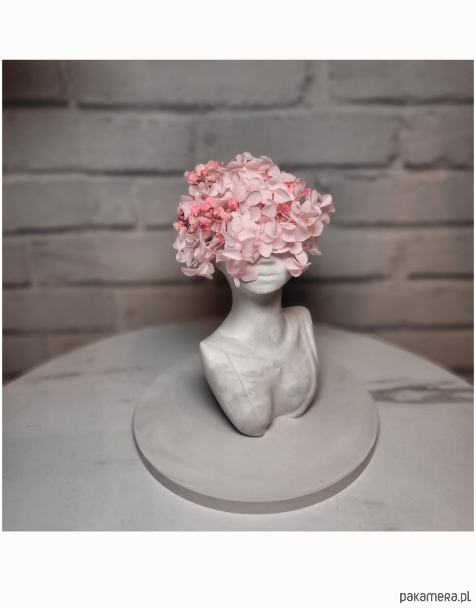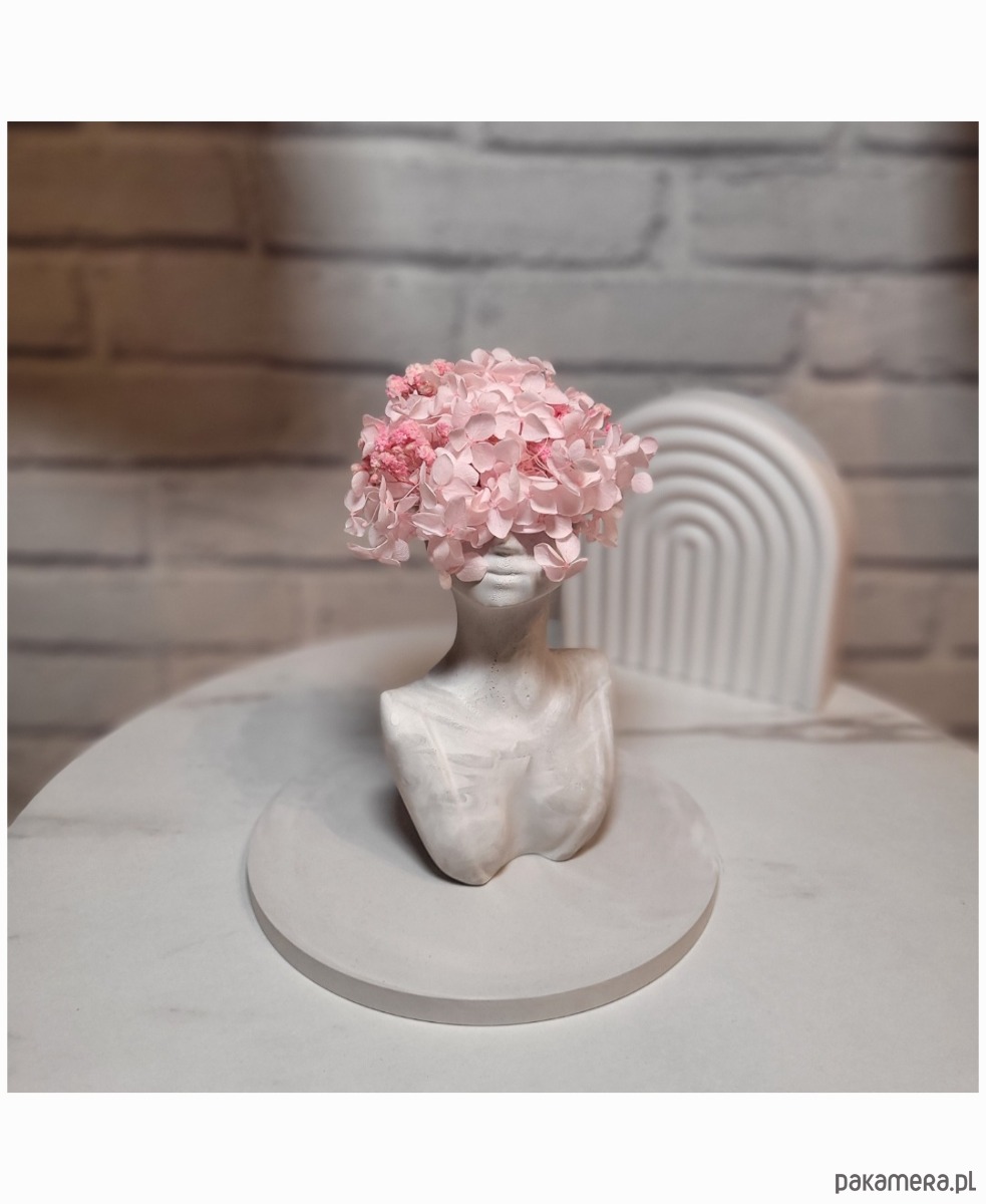 Elegancka figurka Kobiety w marmurowo-szarym kolorze z delikatnymi gałązkami hortensji stanie się stylowym akcentem w Twojej przestrzeni.