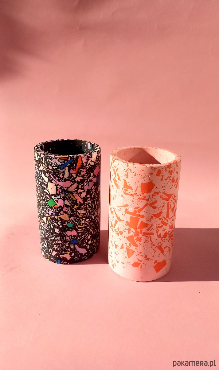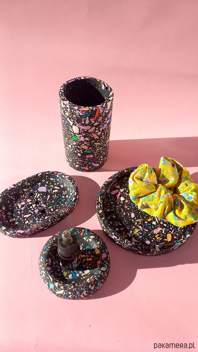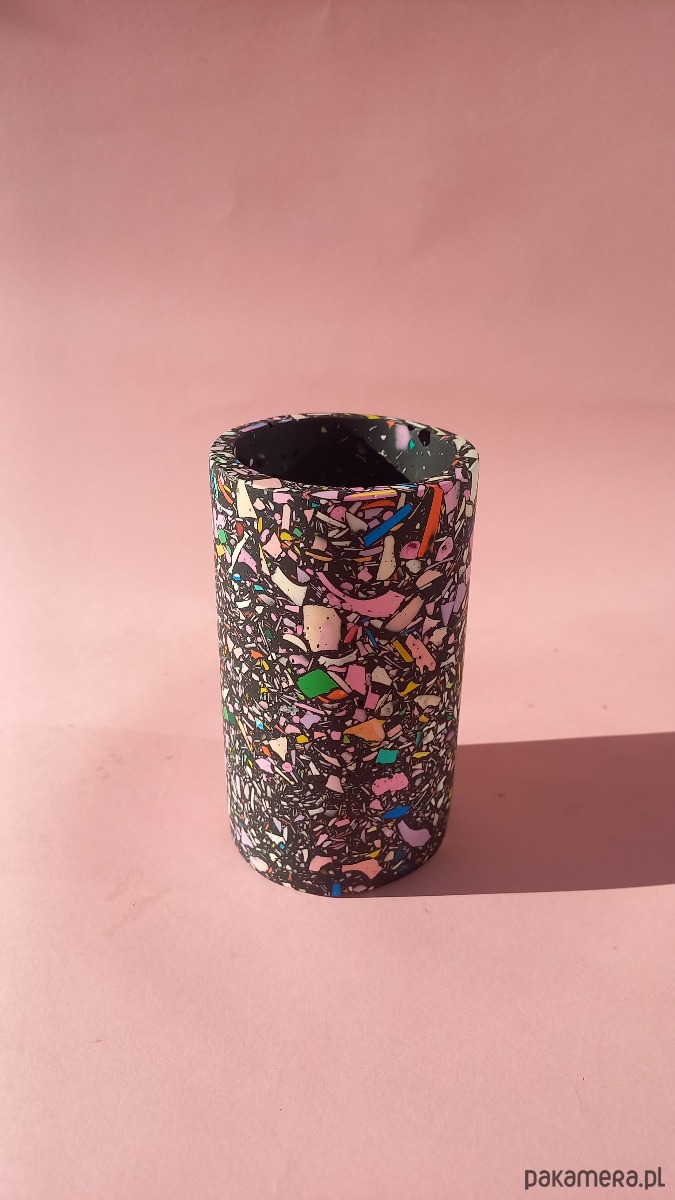 Wazon, lastryko, okrągły pojemnik, na biurko, do łazienki, czarny