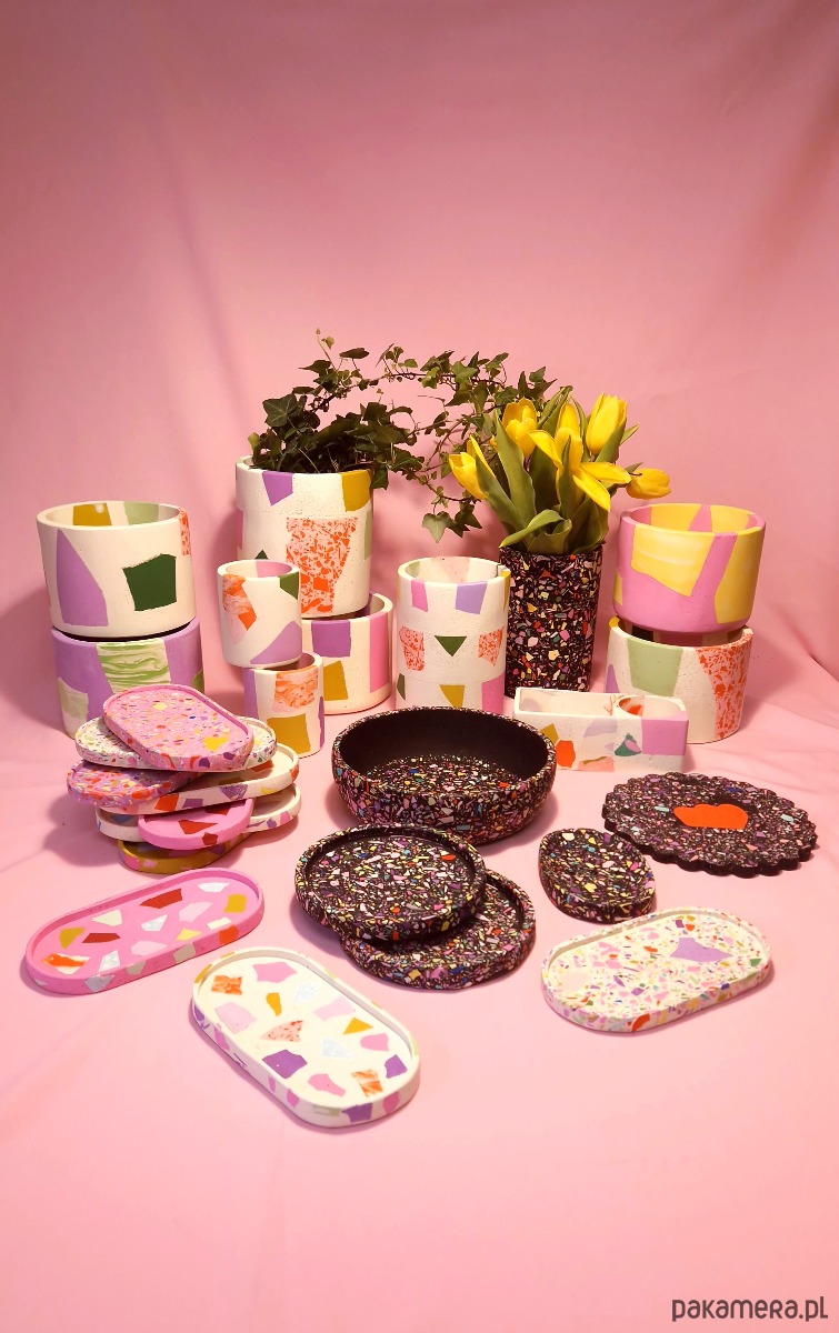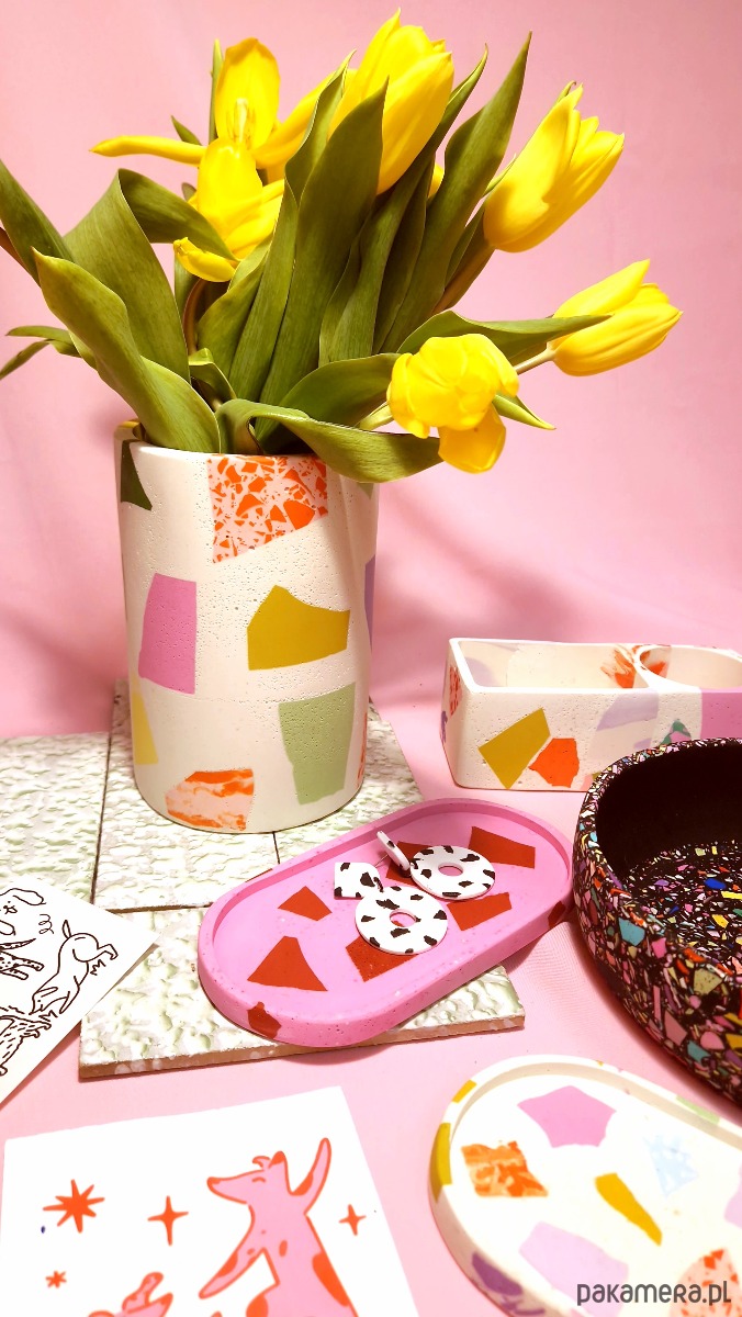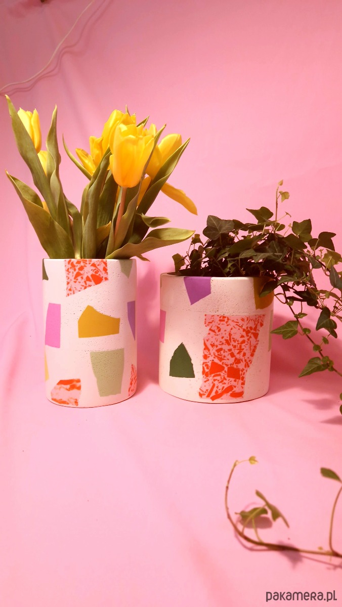 Wazon na kwiaty, różowy, kolorowe lastryko, wys. 20 cm