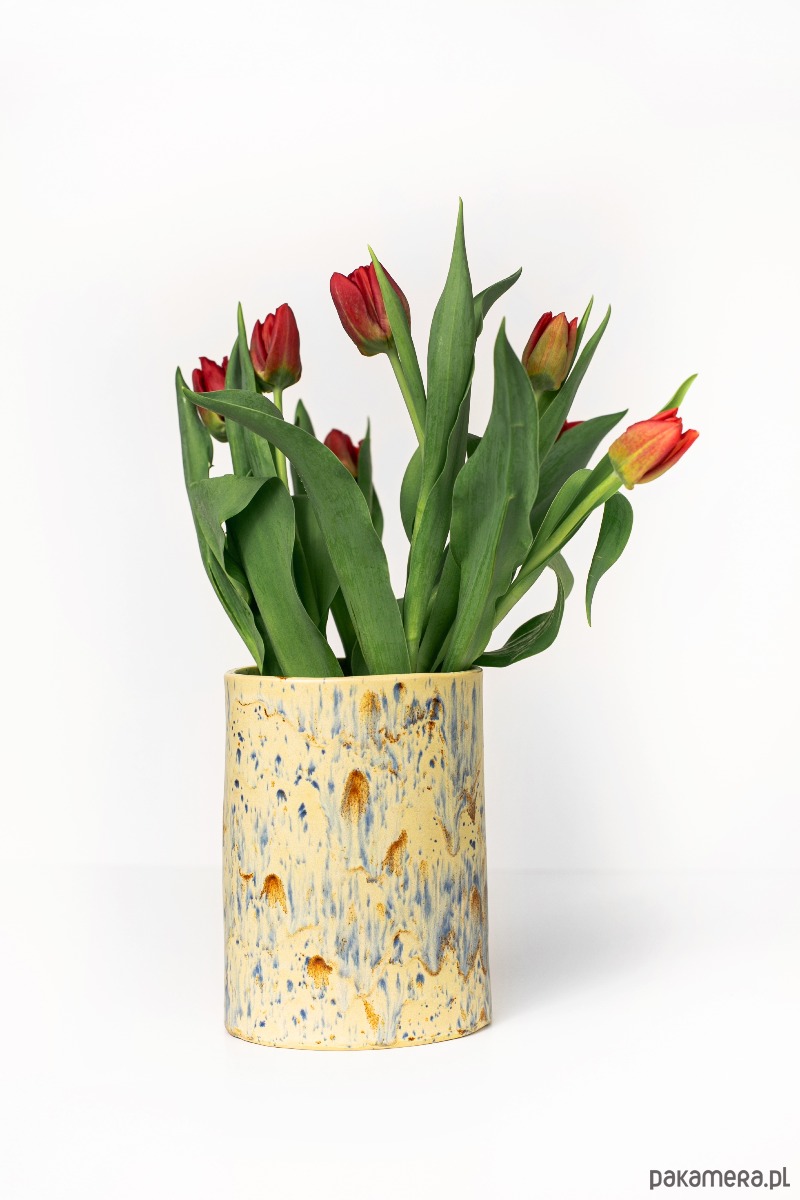 – Niski wazon idealny na świeże kwiaty lub kompozycje suszonych roślin.