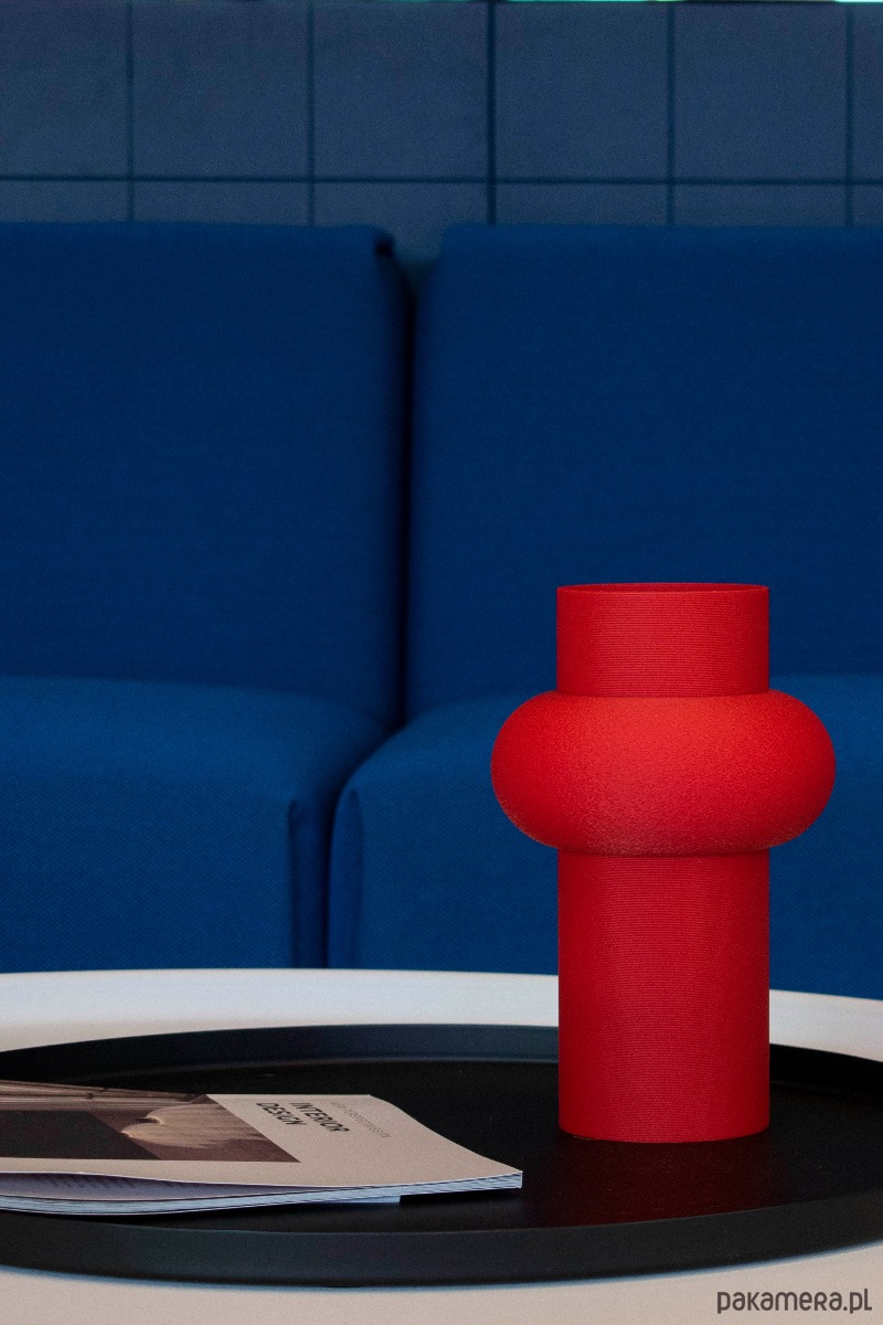 Kolekcja modularnych wazonów POP powstała w technologii druku 3D z biodegradowalnych materiałów. To połączenie nowoczesnej technologii z designem inspirowanym stylem Memphis wyróżniającym się odważnymi połączeniami form i kolorów. Wazony posiadają wymienne nakładki, które umożliwiają personalizację ich wyglądu w zależności od nastroju, okazji czy przestrzeni, w której się znajdują. To było nasz główne założenie projektowe, żeby produkt mógł dopasowywać się do użytkownika i żeby nie był produktem na chwilę.