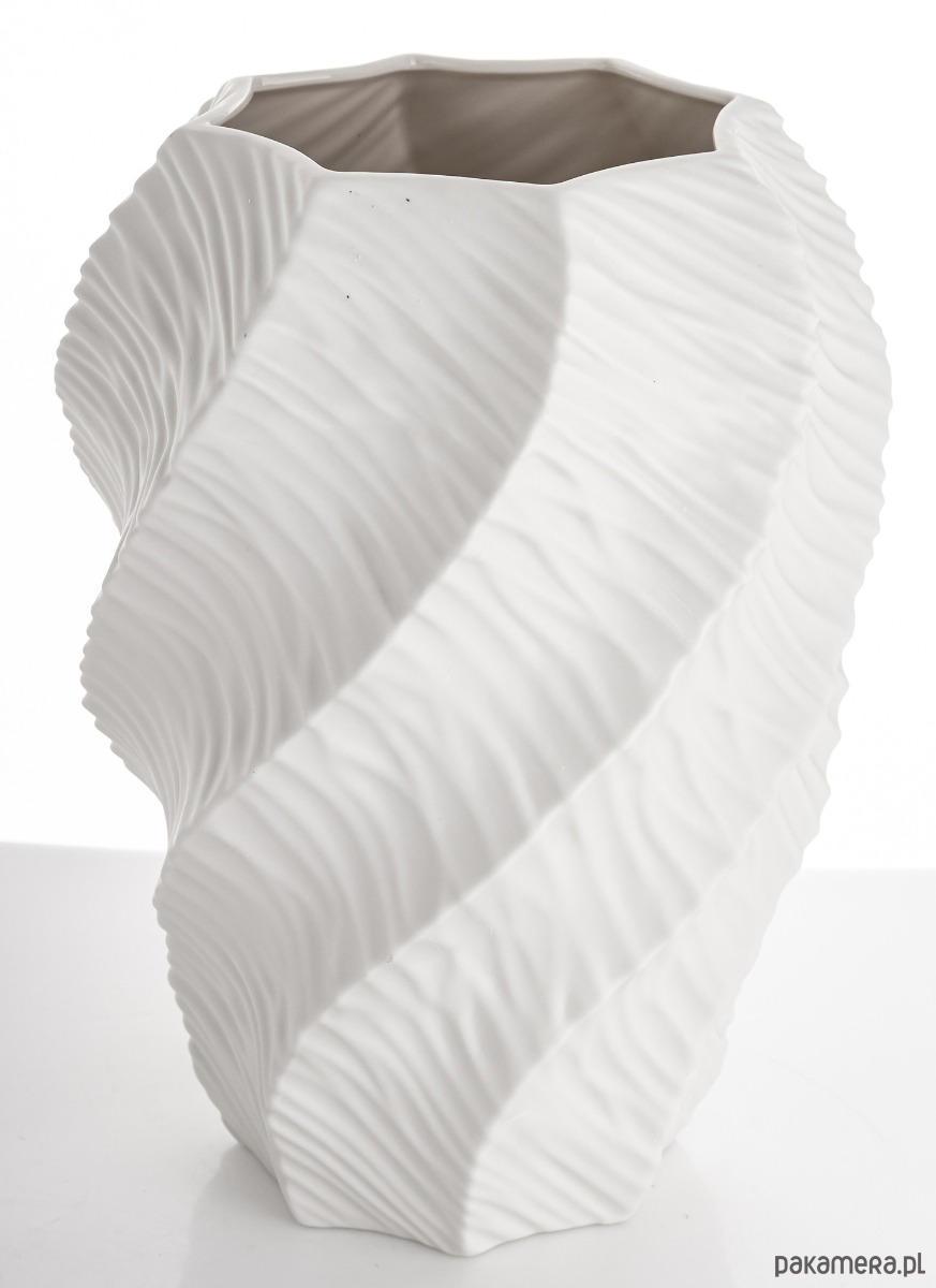 Wazon porcelanowy w kolorze białym, który łączy w sobie nowoczesny design z funkcjonalnością. Jego unikalny, spiralny kształt nie tylko przyciąga wzrok, ale także dodaje charakteru każdemu wnętrzu, czyniąc go idealnym elementem dekoracyjnym. Wykonany z wysokiej jakości ceramiki, jest nie tylko estetyczny, ale również niezwykle trwały. Idealnie nadaje się do różnorodnych kompozycji kwiatowych, zarówno pojedynczych kwiatów, jak i większych bukietów. Doskonały do salonu, sypialni czy biura.