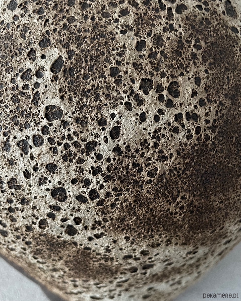 Powierzchnia pokryta naturalnym, nietoksycznym szkliwem o ziemistej teksturze subtelnie nawiązuje do surowych kształtów natury – jego wzory i delikatne nierówności przywodzą na myśl organiczną strukturę gleby i skał.