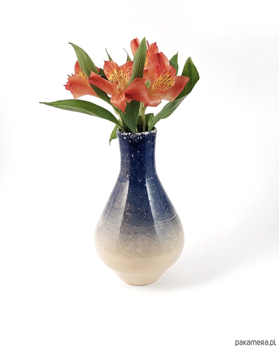 Ceramiczny wazon w kolorze beżowo-granatowym. Gradient kolorów nawiązuje do nocnej śnieżycy.