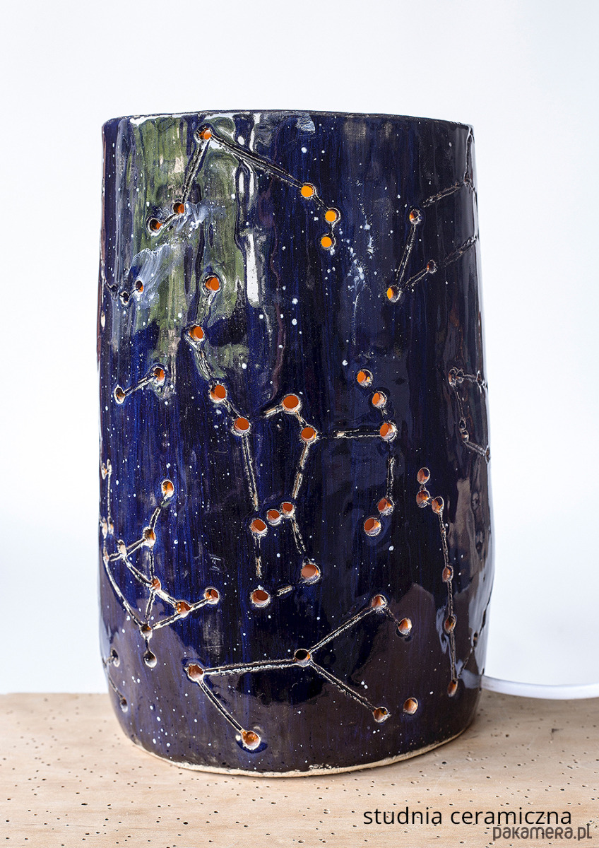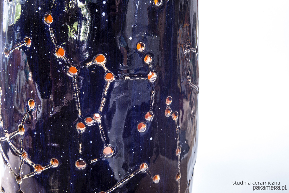 wzór gwiazdozbiorów w którym każda gwiazda to otworek ukazujący barwę wnętrza wazonu - kolor żółty.