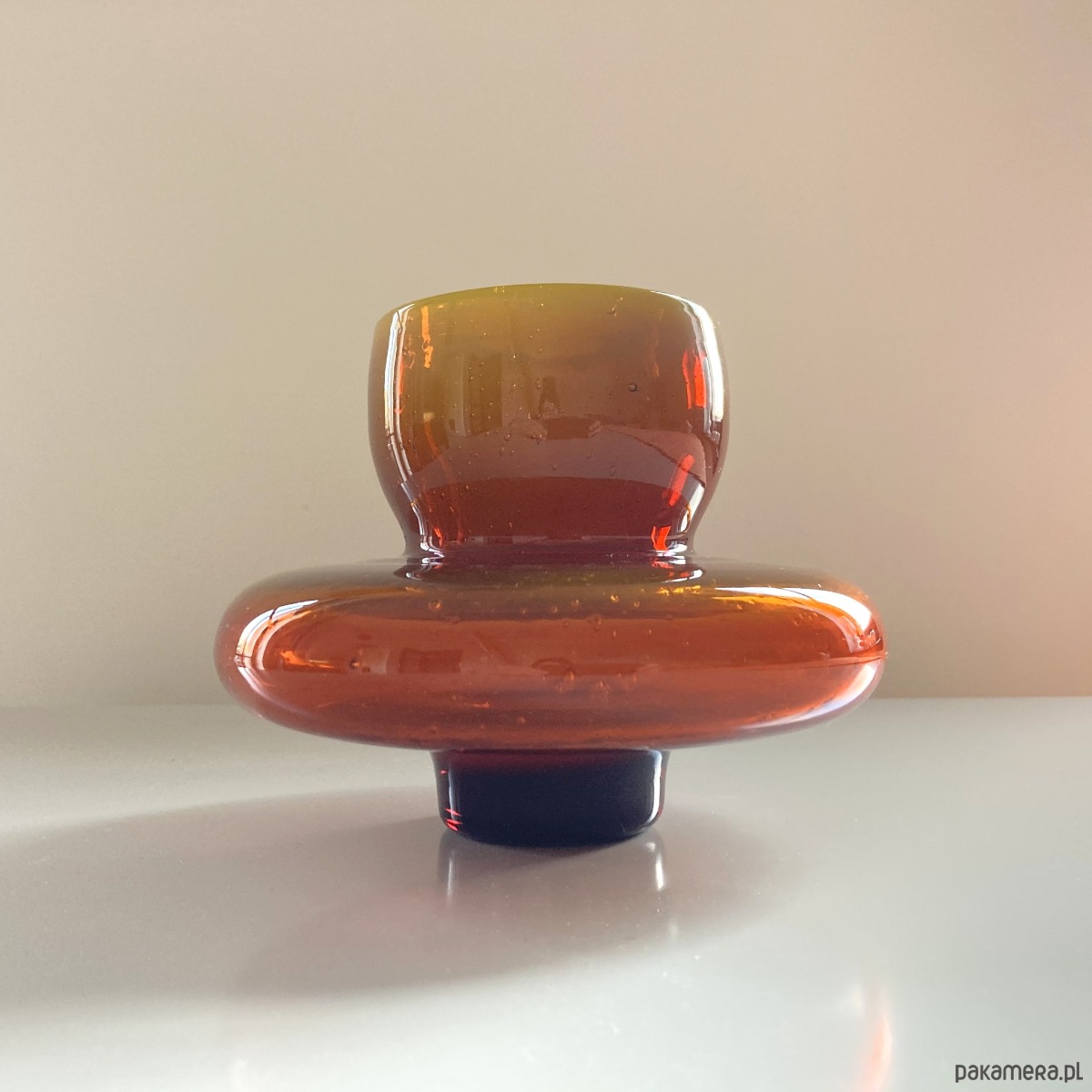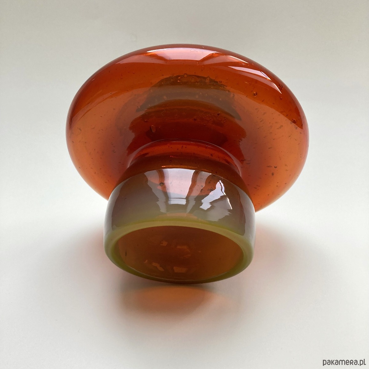 w Hucie "Sudety" w Szczytnej Śląskiej. Wazon wykonano ze szkła dmuchanego, nasyconego