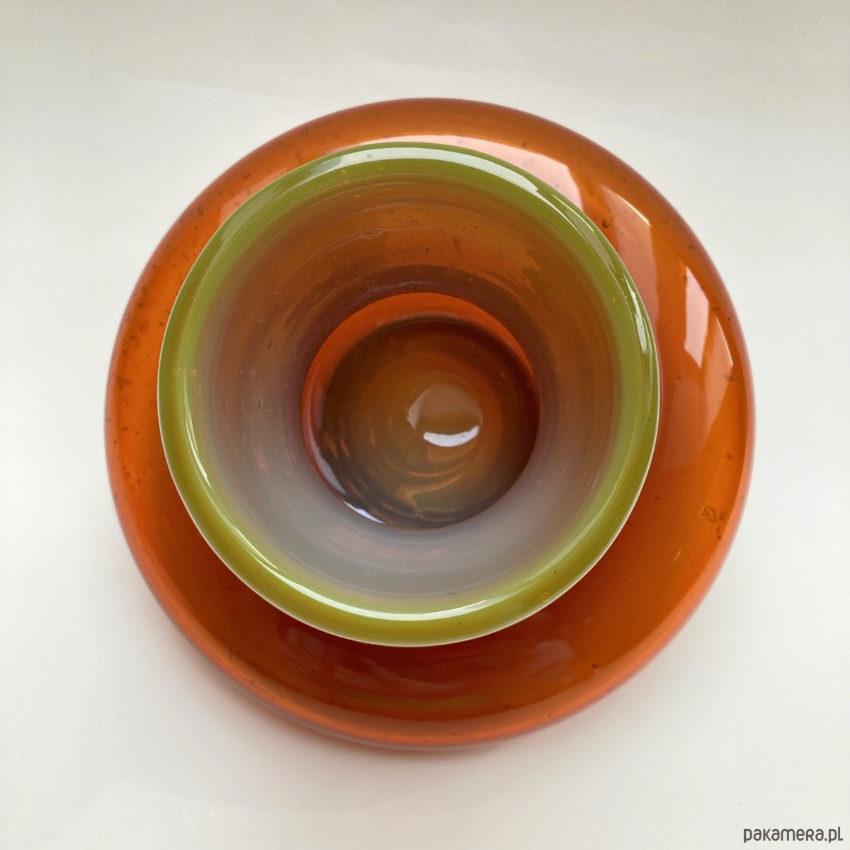 wnętrze mleczno-beżowe. Całość w kolorze brązowo-pomarańczowym. Stan bardzo dobry.