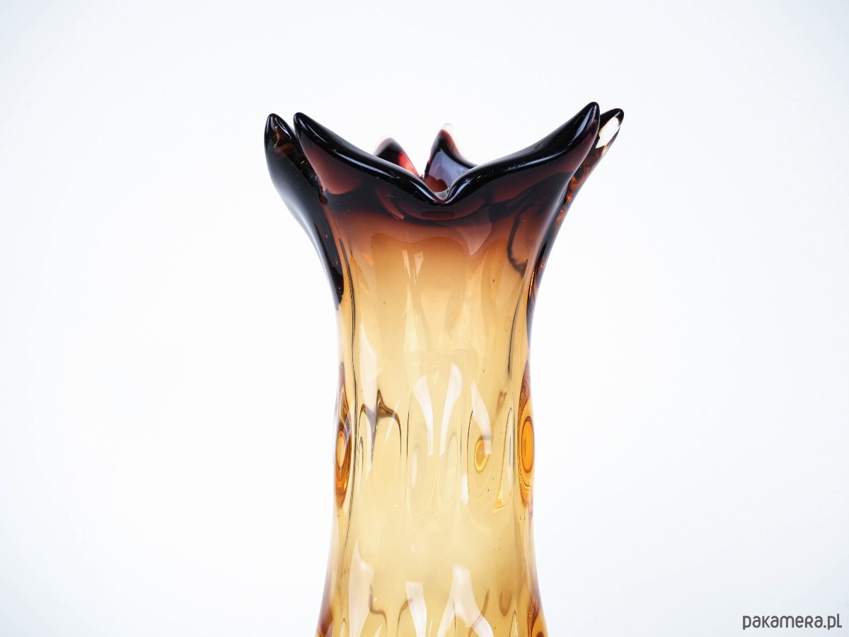 Wazon szklany bursztynowy, szkło Murano, lata 60, produkcja: Włochy