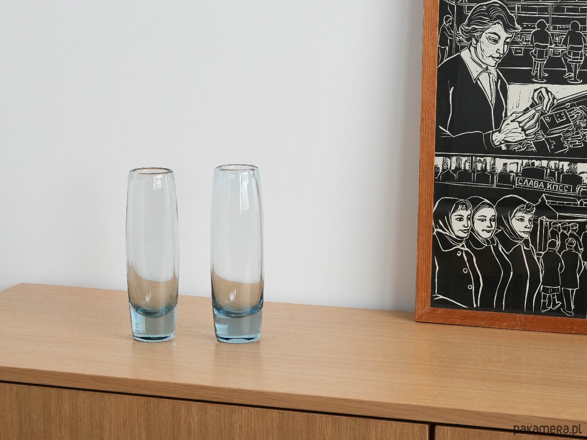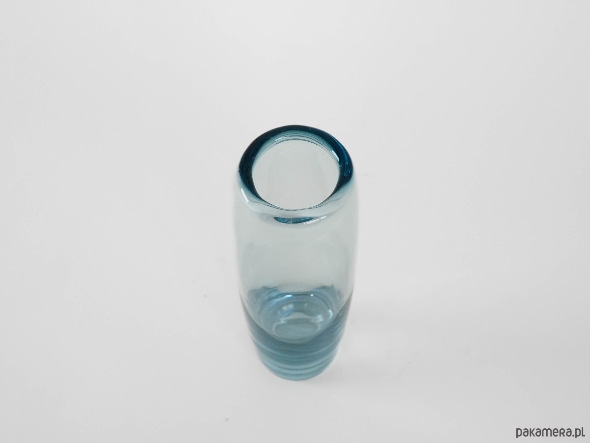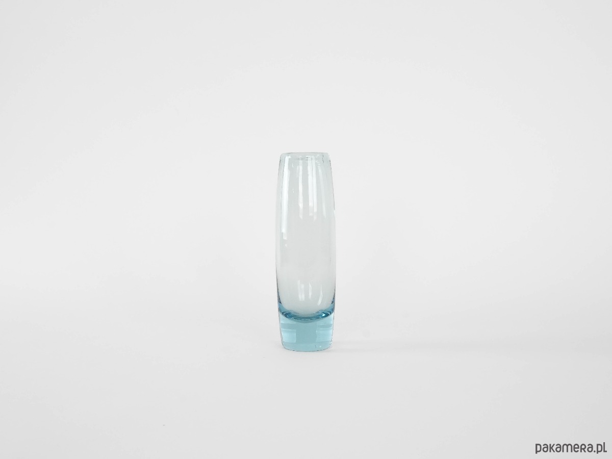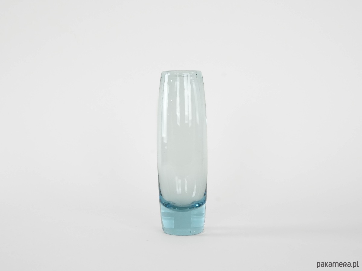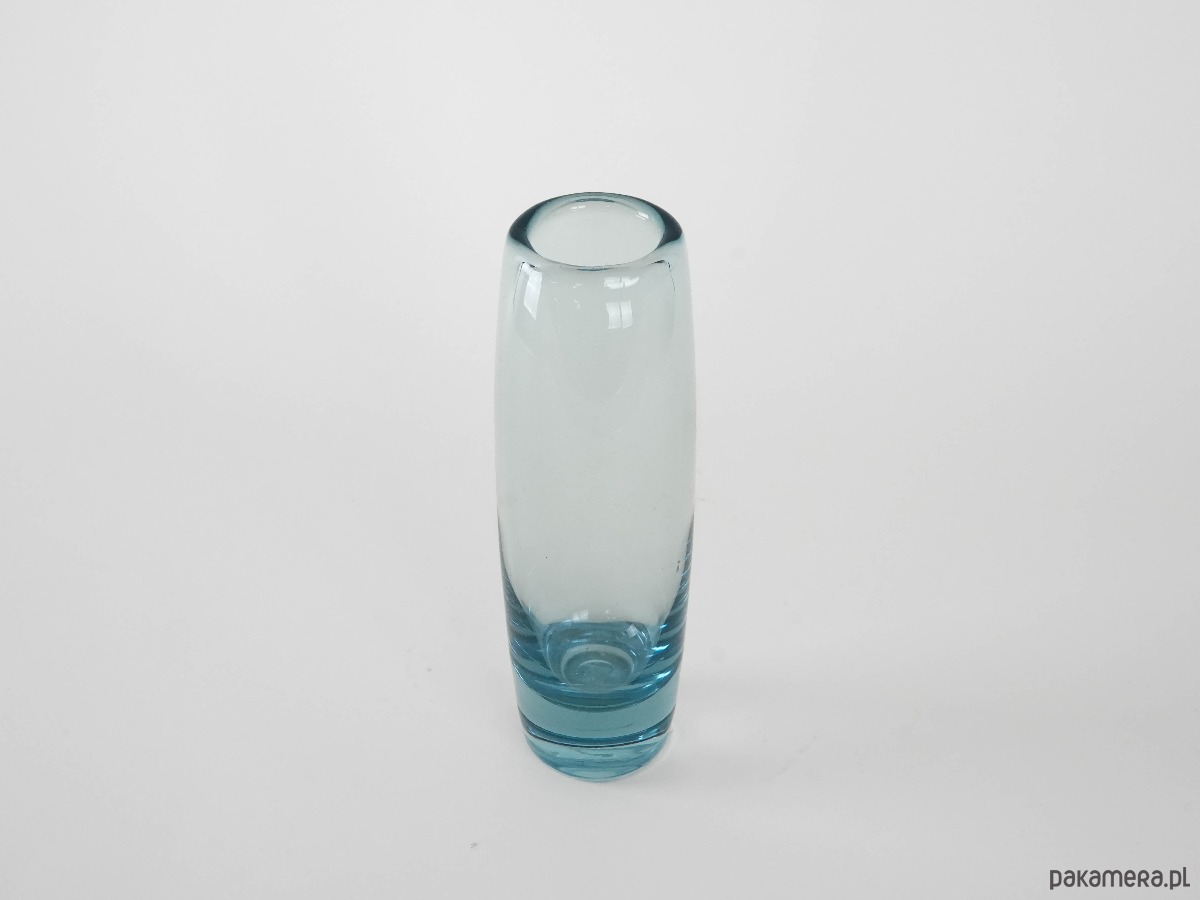 Wykonany z grubego, przezroczystego szkła o delikatnym, niebieskim odcieniu – charakterystycznym dla twórczości Lütkena. Prosta cylindryczna forma z ciężką, solidną podstawą doskonale oddaje ducha duńskiego modernizmu – funkcjonalność połączoną z wyrafinowaną prostotą.