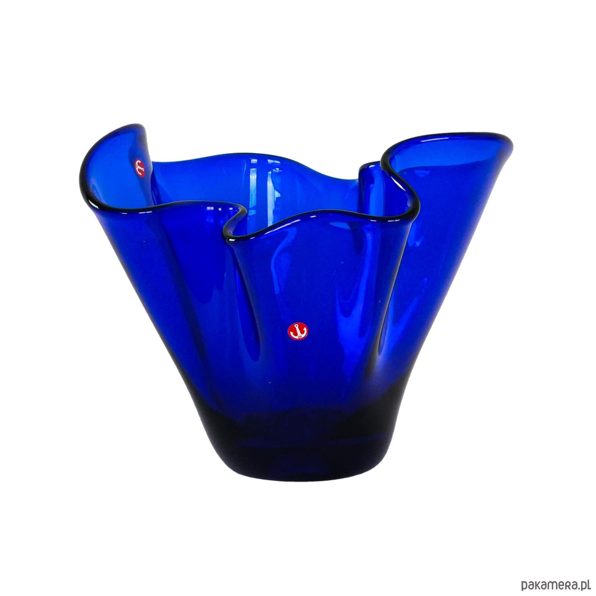 Efektowny wazon z kolekcji marki Adida, wyróżniający się organiczną formą inspirowaną kształtem tulipana. Wykonany ze szkła w głębokim, kobaltowym odcieniu, łączy elegancję z nowoczesnym wyrazem. Marka Adida nie jest dobrze udokumentowana na rynku szkła użytkowego, co czyni ten egzemplarz ciekawą i nieoczywistą propozycją dla kolekcjonerów designu północnego.