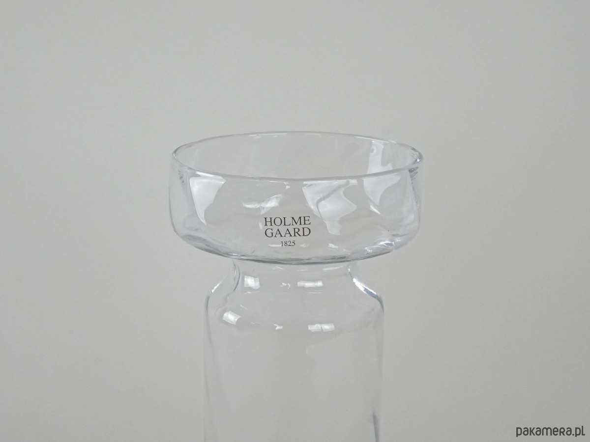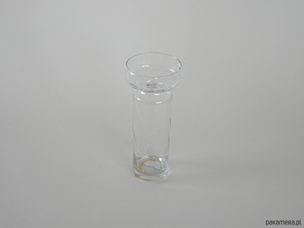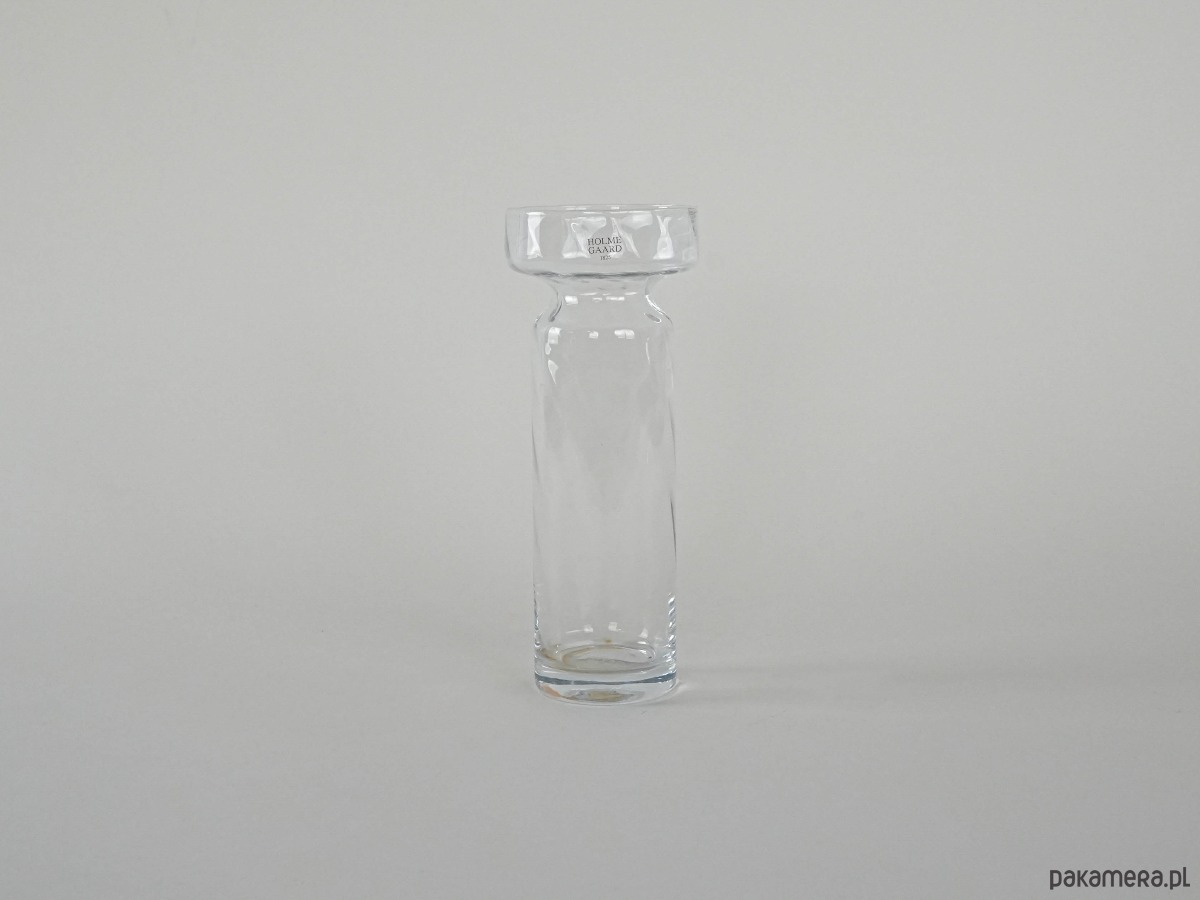 Elegancki wazon ze szkła artystycznego marki Holmegaard, ikony duńskiego designu. Ręcznie formowany z bezbarwnego szkła o subtelnie skręconej fakturze, z charakterystycznym poszerzonym kołnierzem u góry. Minimalistyczna forma łączy prostotę i wyrafinowanie, charakterystyczne dla skandynawskiej szkoły wzornictwa. Doskonale komponuje się zarówno w klasycznych, jak i nowoczesnych wnętrzach, podkreślając piękno pojedynczych kwiatów lub gałązek.