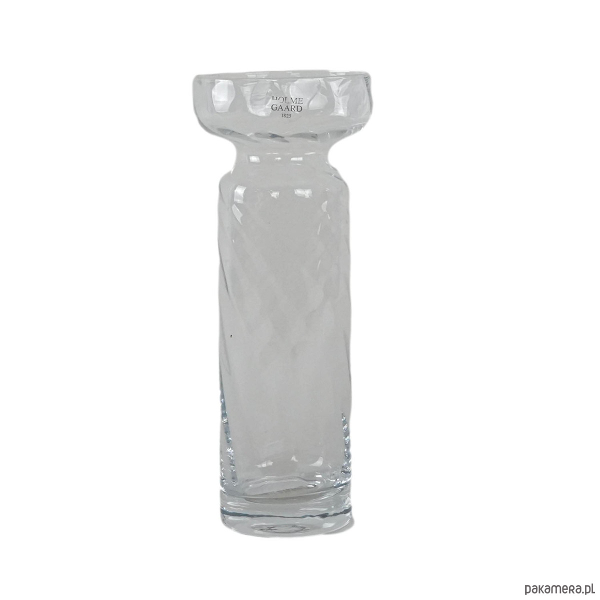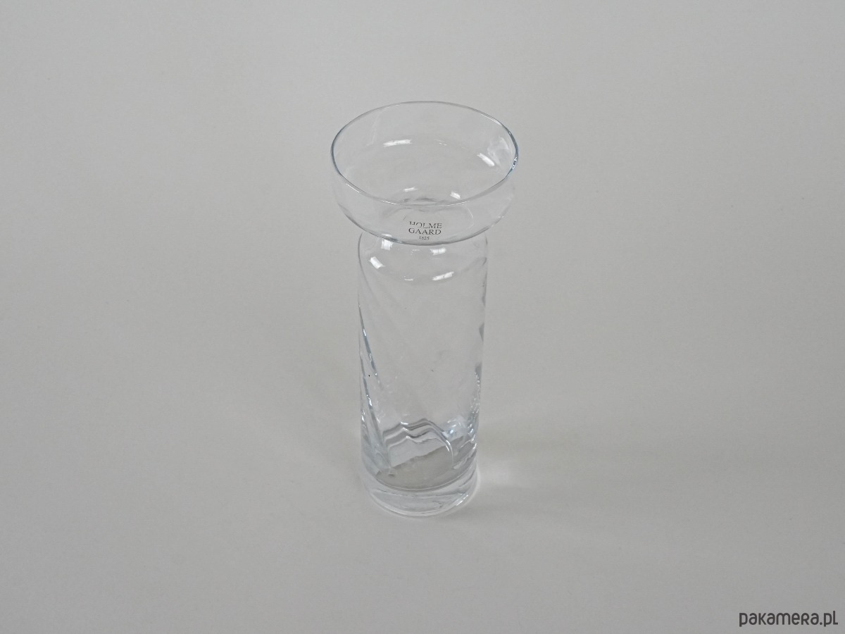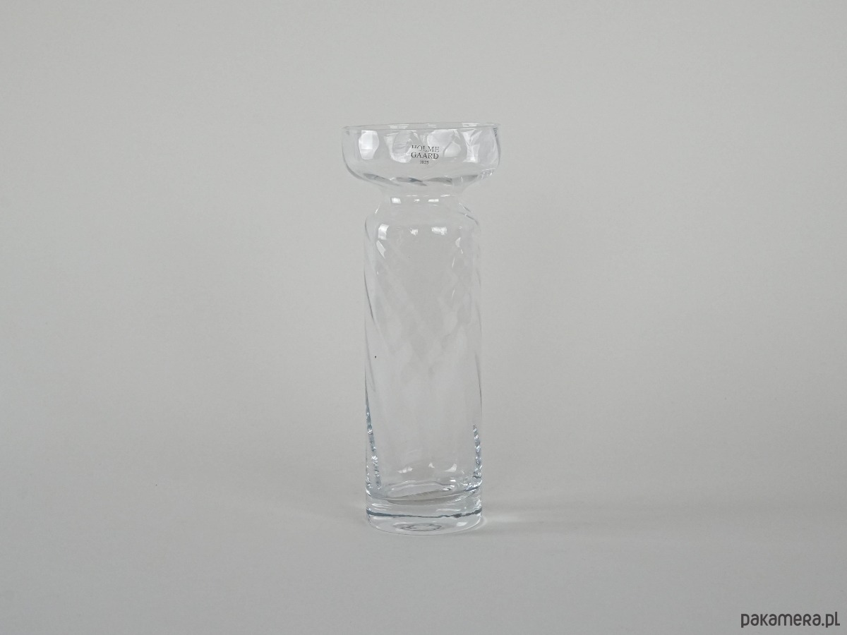 Elegancki wazon ze szkła artystycznego marki Holmegaard, ikony duńskiego designu. Ręcznie formowany z bezbarwnego szkła o subtelnie skręconej fakturze, z charakterystycznym poszerzonym kołnierzem u góry. Minimalistyczna forma łączy prostotę i wyrafinowanie, charakterystyczne dla skandynawskiej szkoły wzornictwa. Doskonale komponuje się zarówno w klasycznych, jak i nowoczesnych wnętrzach, podkreślając piękno pojedynczych kwiatów lub gałązek.