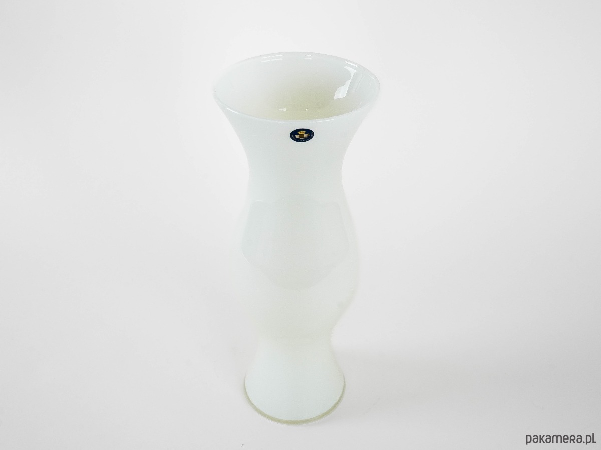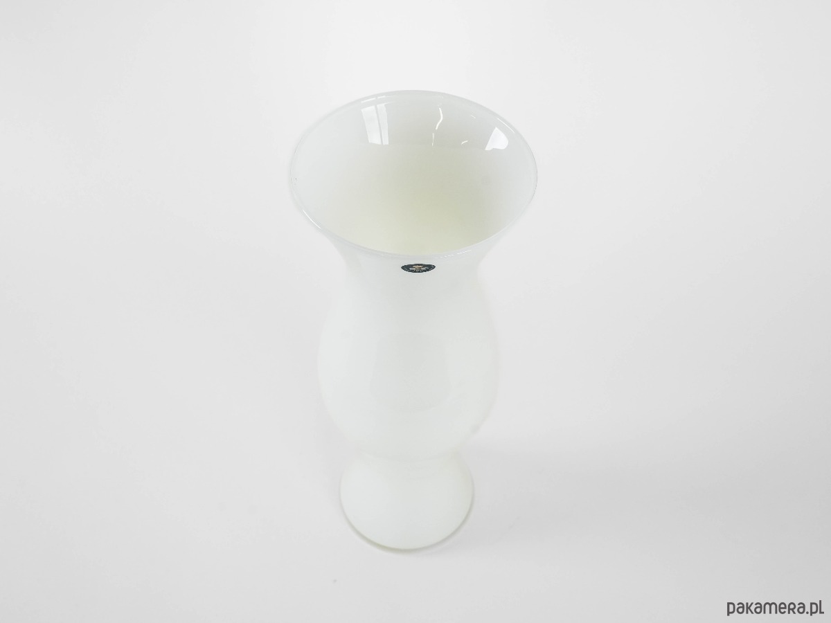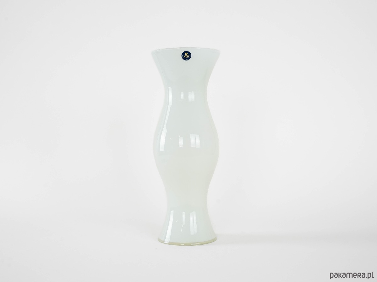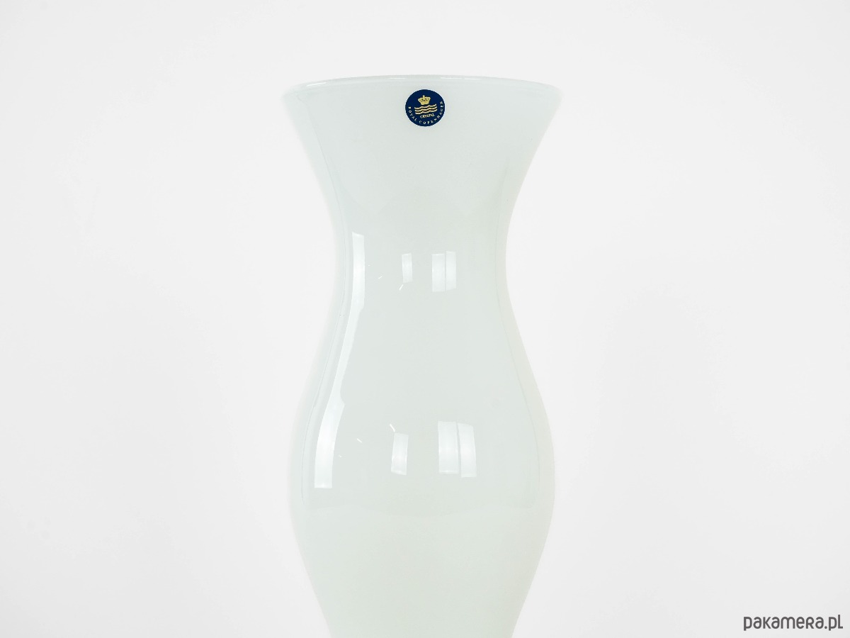 Elegancka forma o płynnej, falującej sylwetce, wykonana z mlecznego szkła, doskonale wpisuje się w skandynawski modernistyczny design drugiej połowy XX wieku. Subtelna kolorystyka i charakterystyczna linia czynią go ponadczasowym elementem dekoracyjnym.