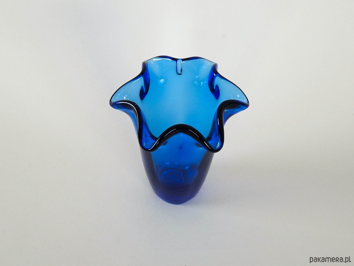 Wazon szklany kobaltowy, duński design, lata 70, produkcja: Dania