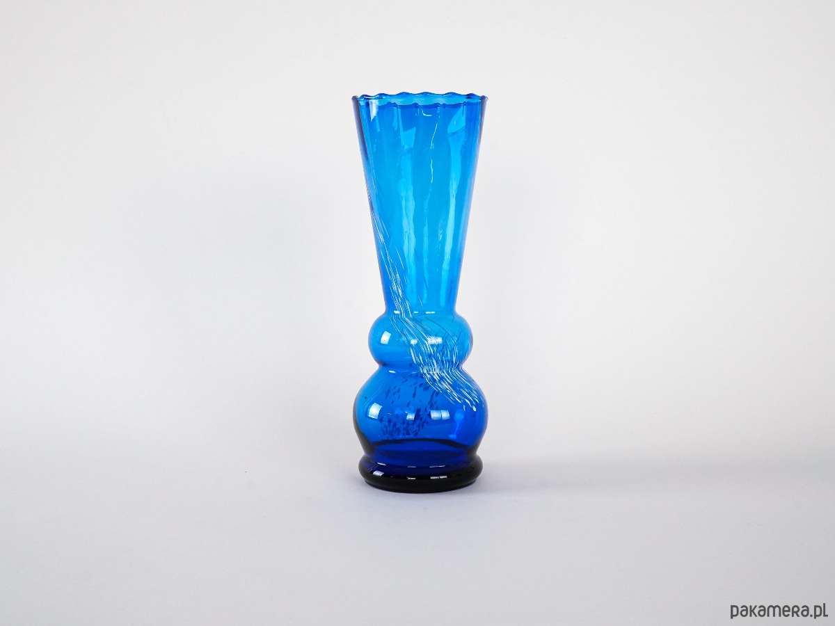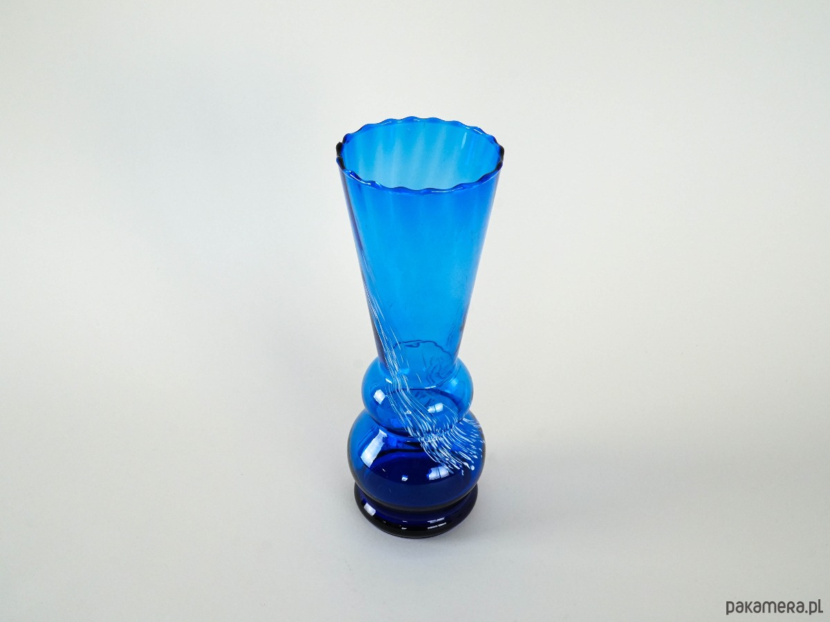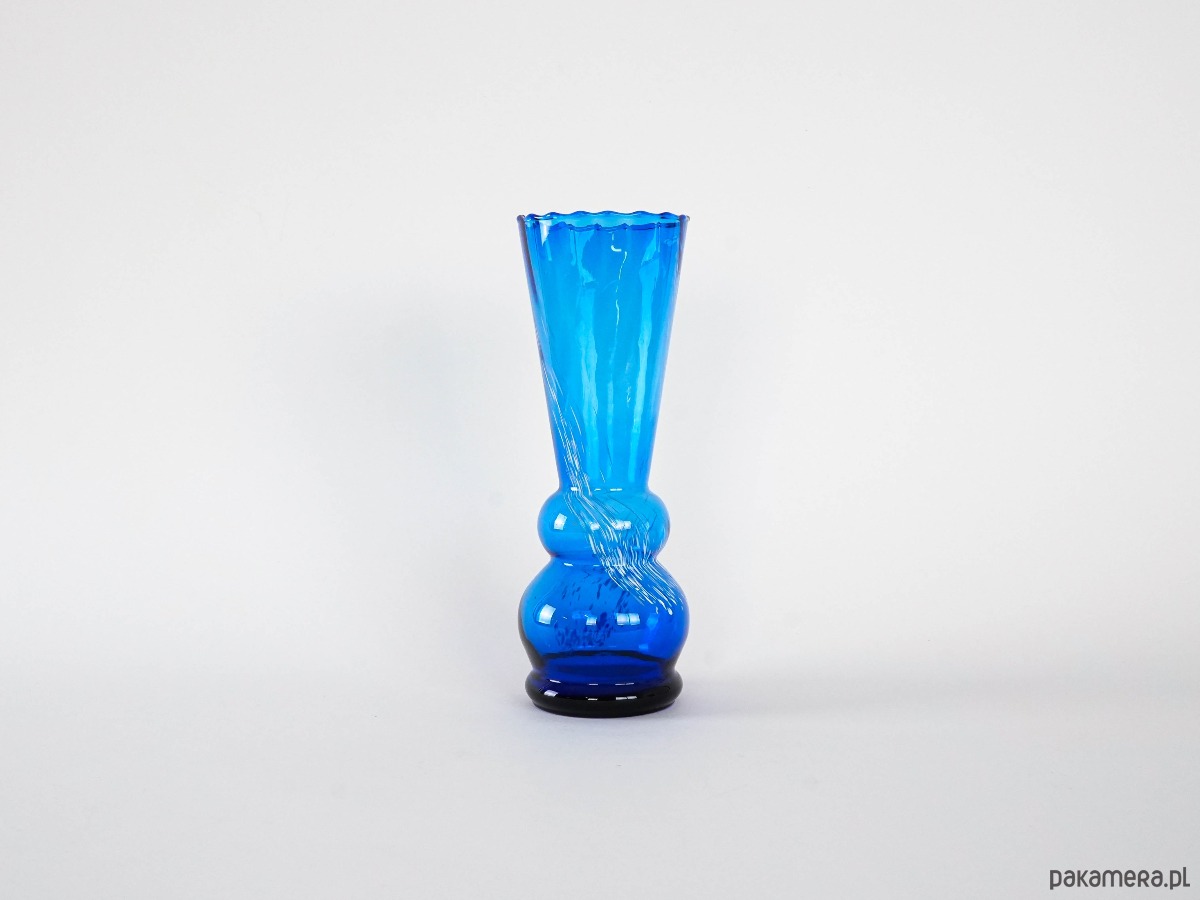 Wazon szklany niebieski, duński design, lata 60, produkcja: Dania