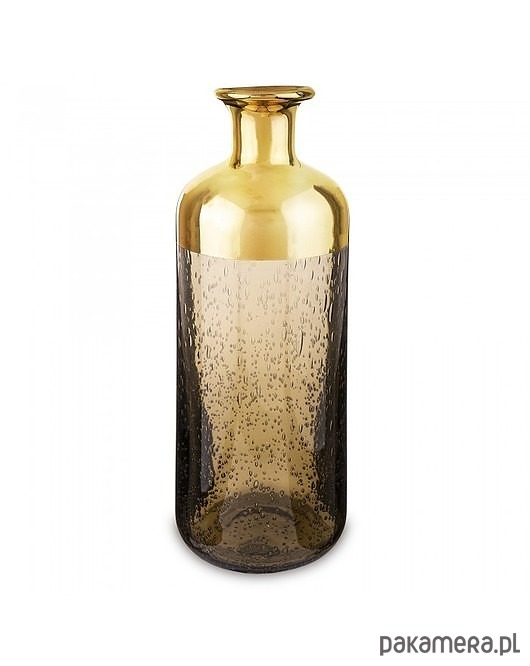 Bardzo ciekawy szklany wazon ze złotym dekorem. Wykonany ze szkła z efektem bąbelków.