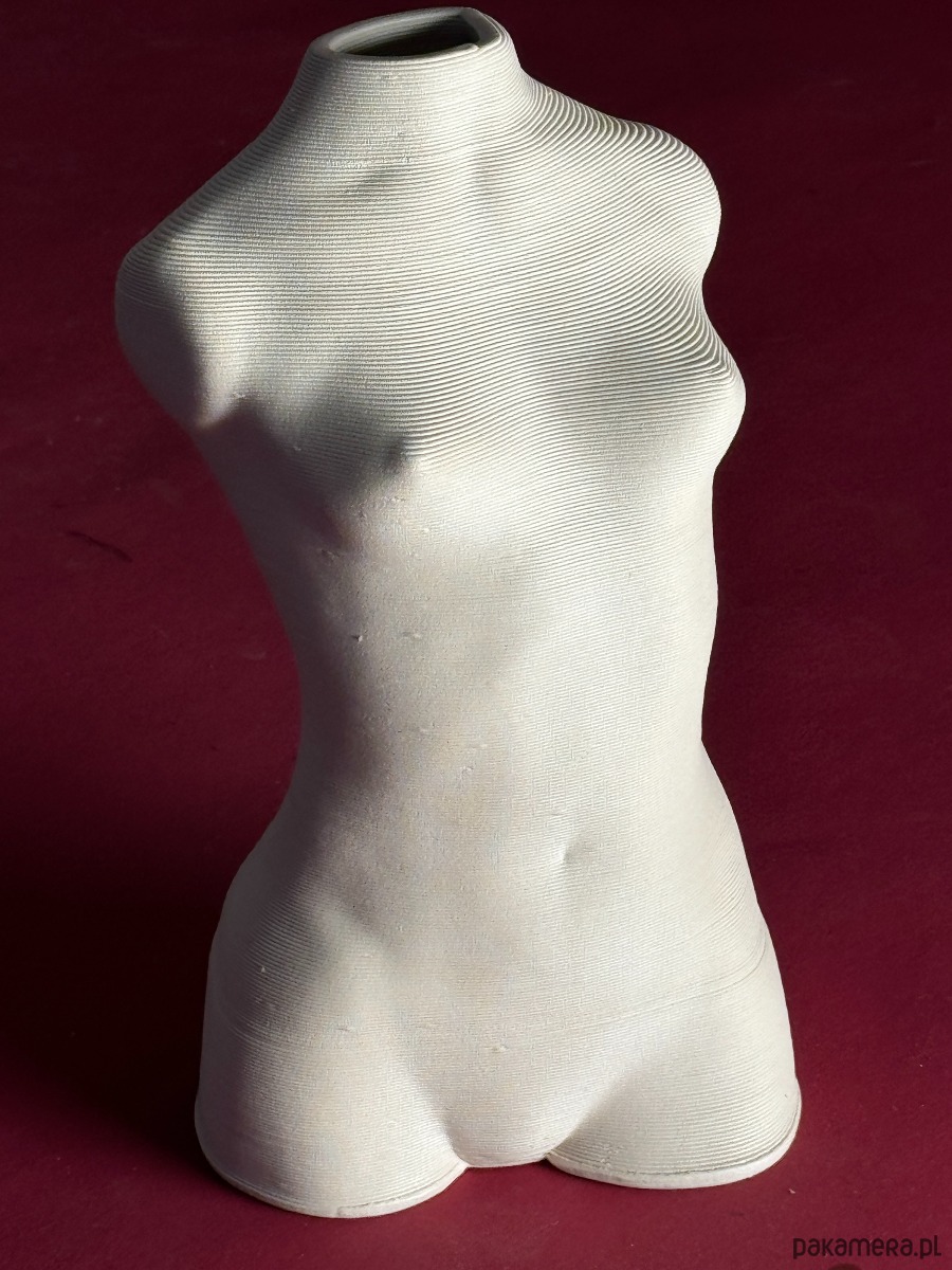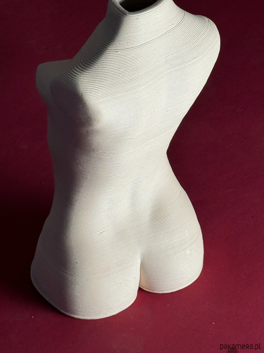 Odkryj unikalne połączenie klasycznego piękna ludzkiego ciała z futurystyczną technologią. Nasz ceramiczny wazon w kształcie kobiecego torsu to hołd dla naturalności, zrealizowany przy pomocy precyzyjnego druku 3D.