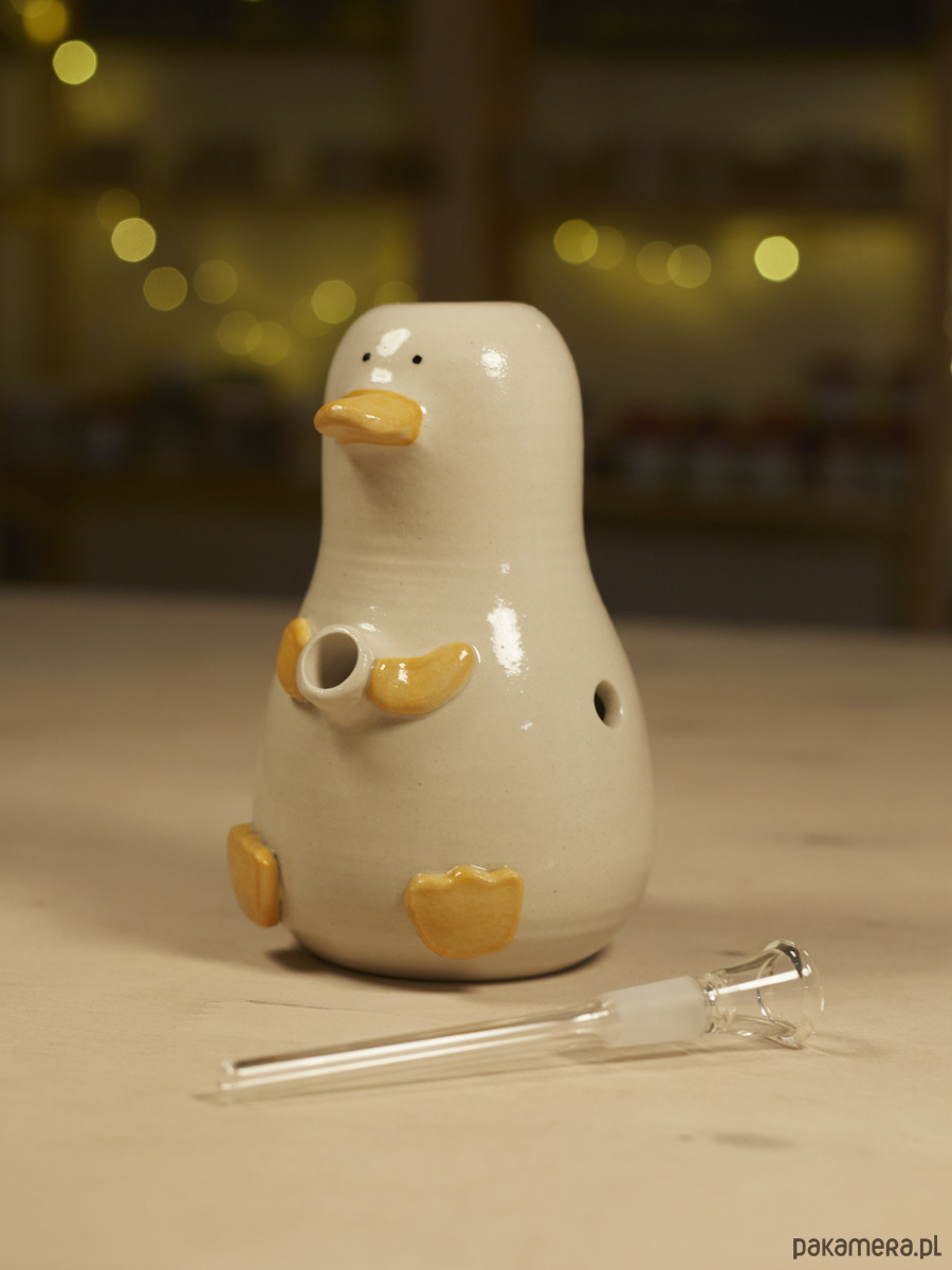 Wysokość to około 18 cm. Jest łatwy w czyszczeniu – można go myć w zmywarce lub użyć alkoholu do dezynfekcji. W zestawie znajduje się cybuch z rurką o szlifie 14,5 mm.