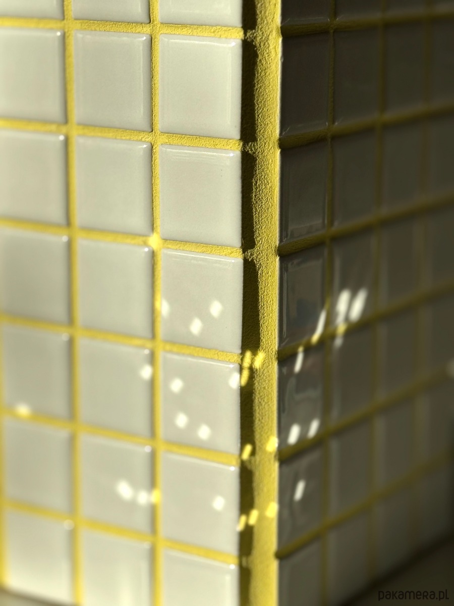 materiał: płytki ceramiczne z połyskiem, płyta MDF, fuga ceramiczna