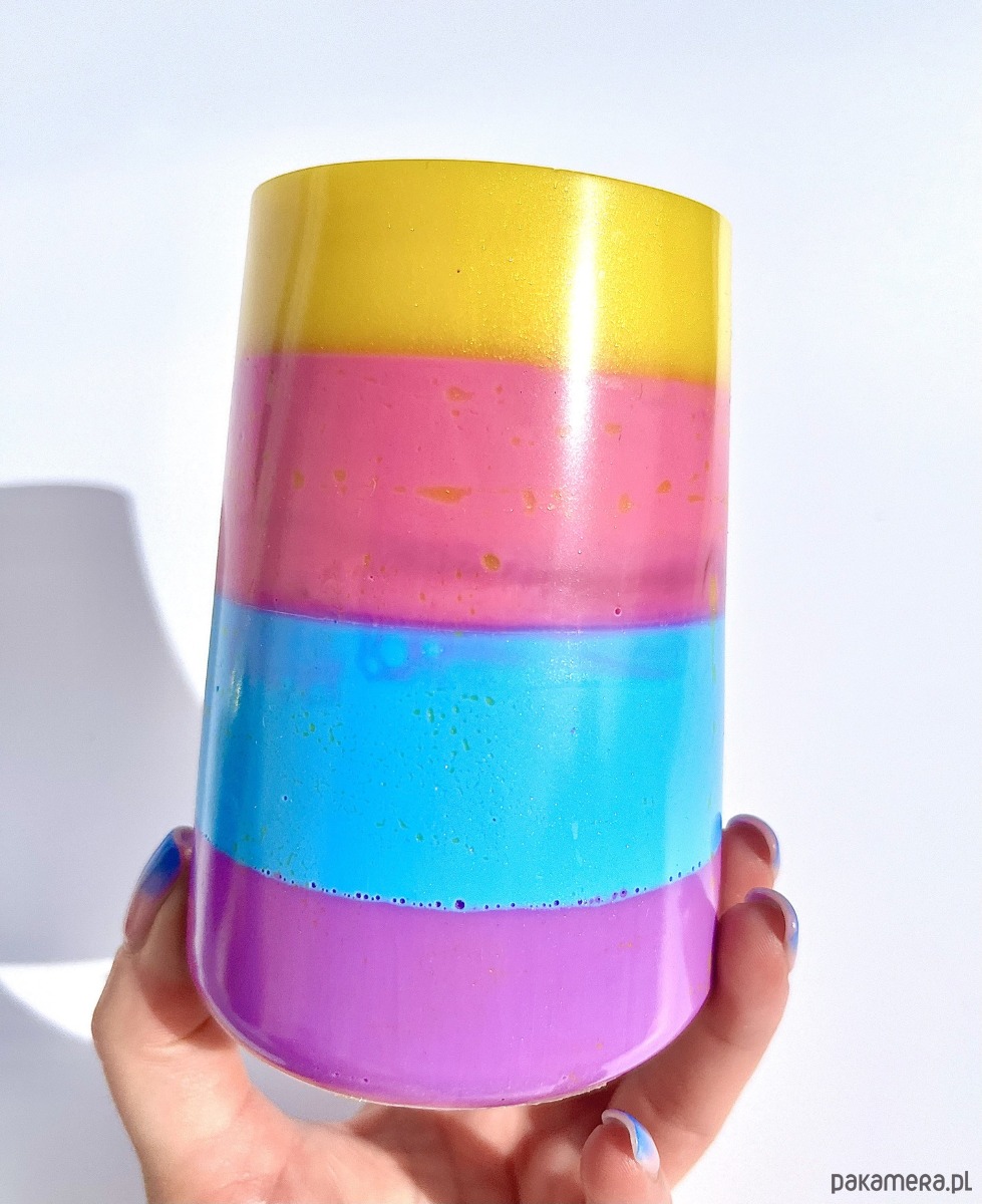 Wazonik dekoracyjno-użytkowy wykonany z żywicy epoksydowej w czterech pastelowych kolorach z lekko mieniaca sie struktura ,widoczne na foto kiedy pada na przedmiot swiatło