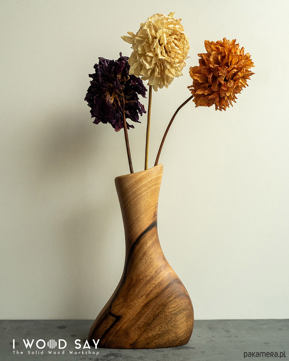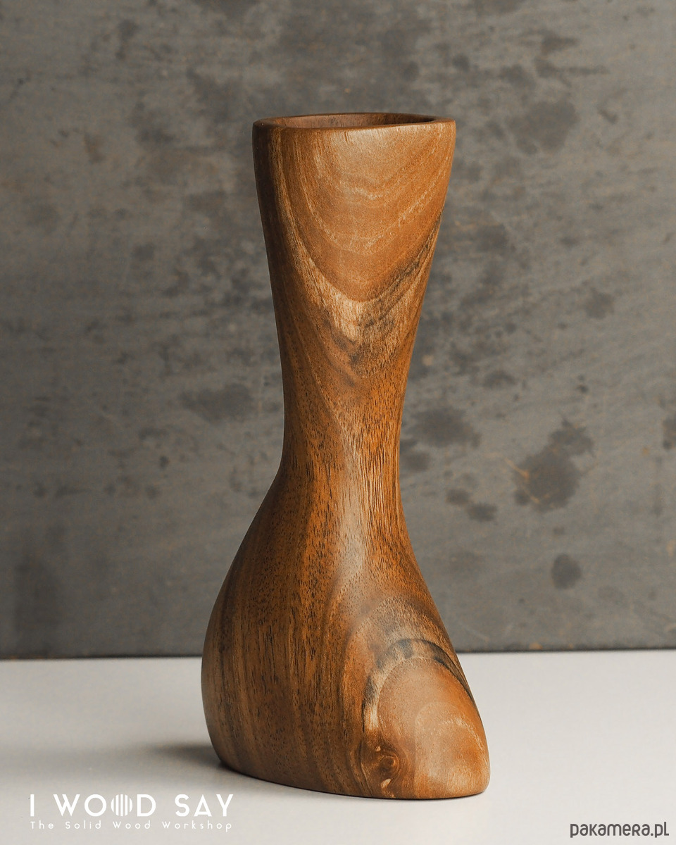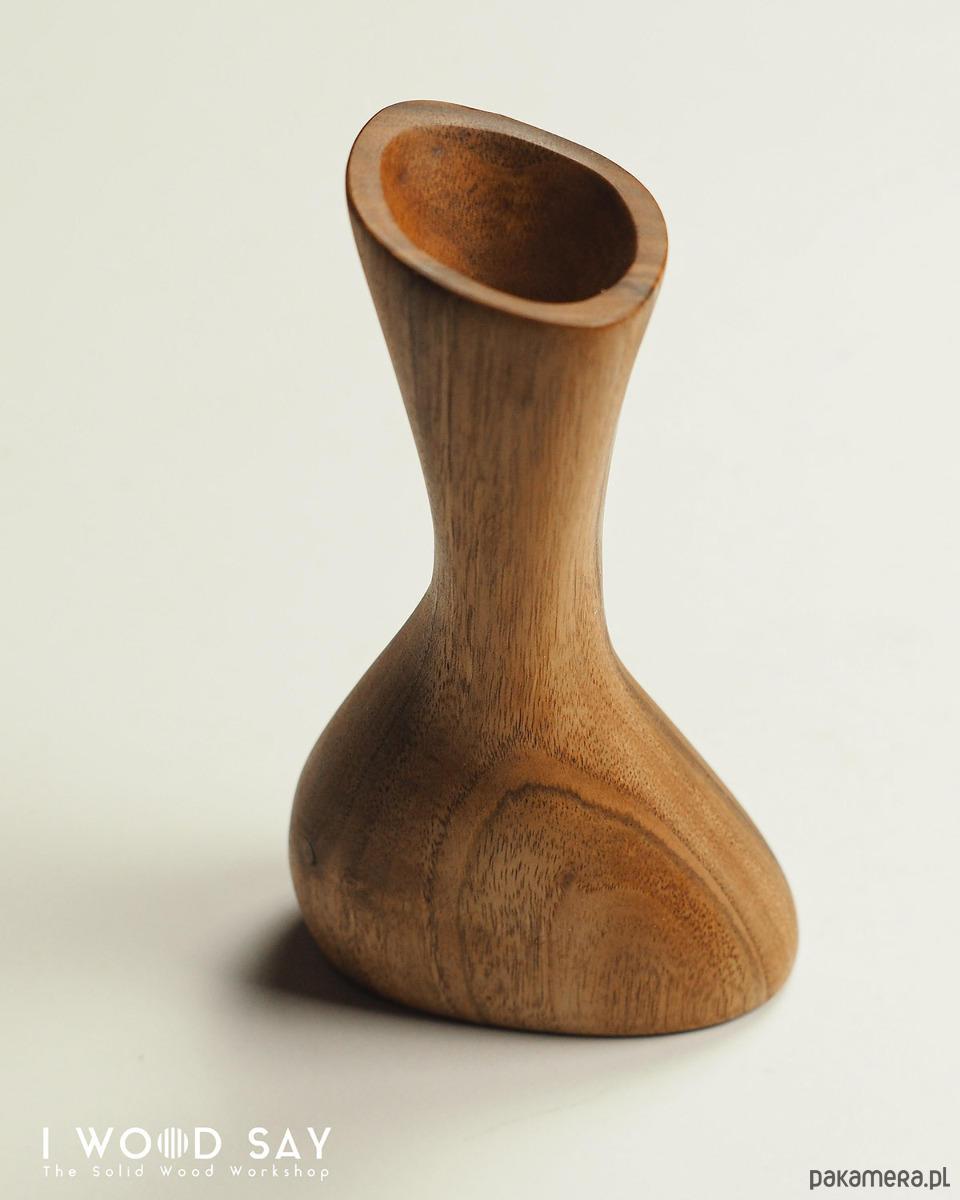 Wazoniki rzeźbione w litym drewnie orzecha włoskiego. Wyróżniają się unikalną, asymetryczną formą, która przywodzi na myśl rzeźby biomorficzne.