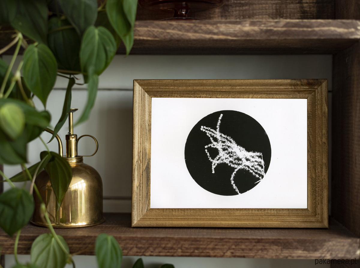 Fotogram, wykonany w ciemni fotograficznej na matowym papierze czarno białym firmy foma/błysk w rozmiarze 13x18cm. Sprzedawany bez ramki.