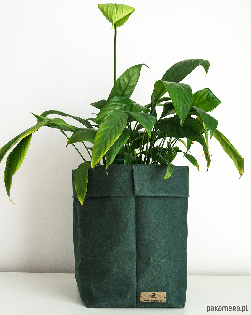Chcąc zastosować worek jako osłonkę należy umieścić w nim podstawek zbierający ewentualny nadmiar wody, a następnie włożyć doniczkę z rośliną.