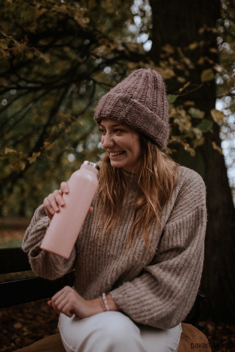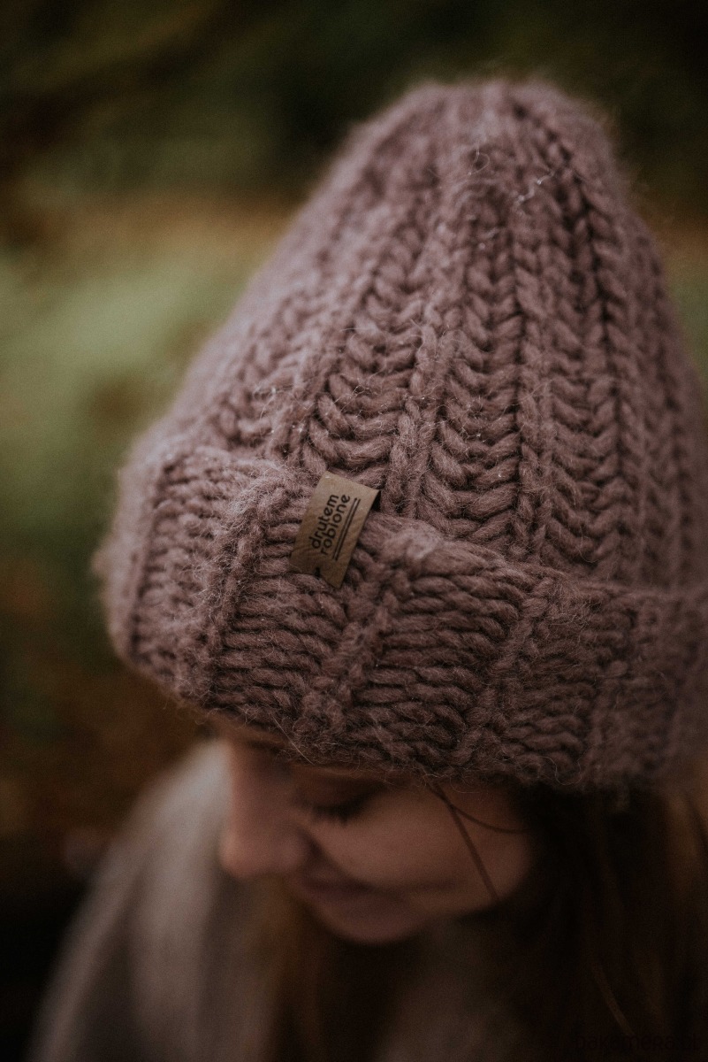 Cudownie puchata wełniana czapka w kolorze ciemnego wrzosu. Czapkę zrobiłam z naturalnej włóczki - bez dodatku plastiku. Dodatkowo splot, którym dziergałam zużywa więcej włóczki niż inne sploty, co dodatkowo sprawia, że czapka jest gruba i mięsista. Sprawdzi się nie tylko w zimę, ale i w wietrzne jesienne poranki.