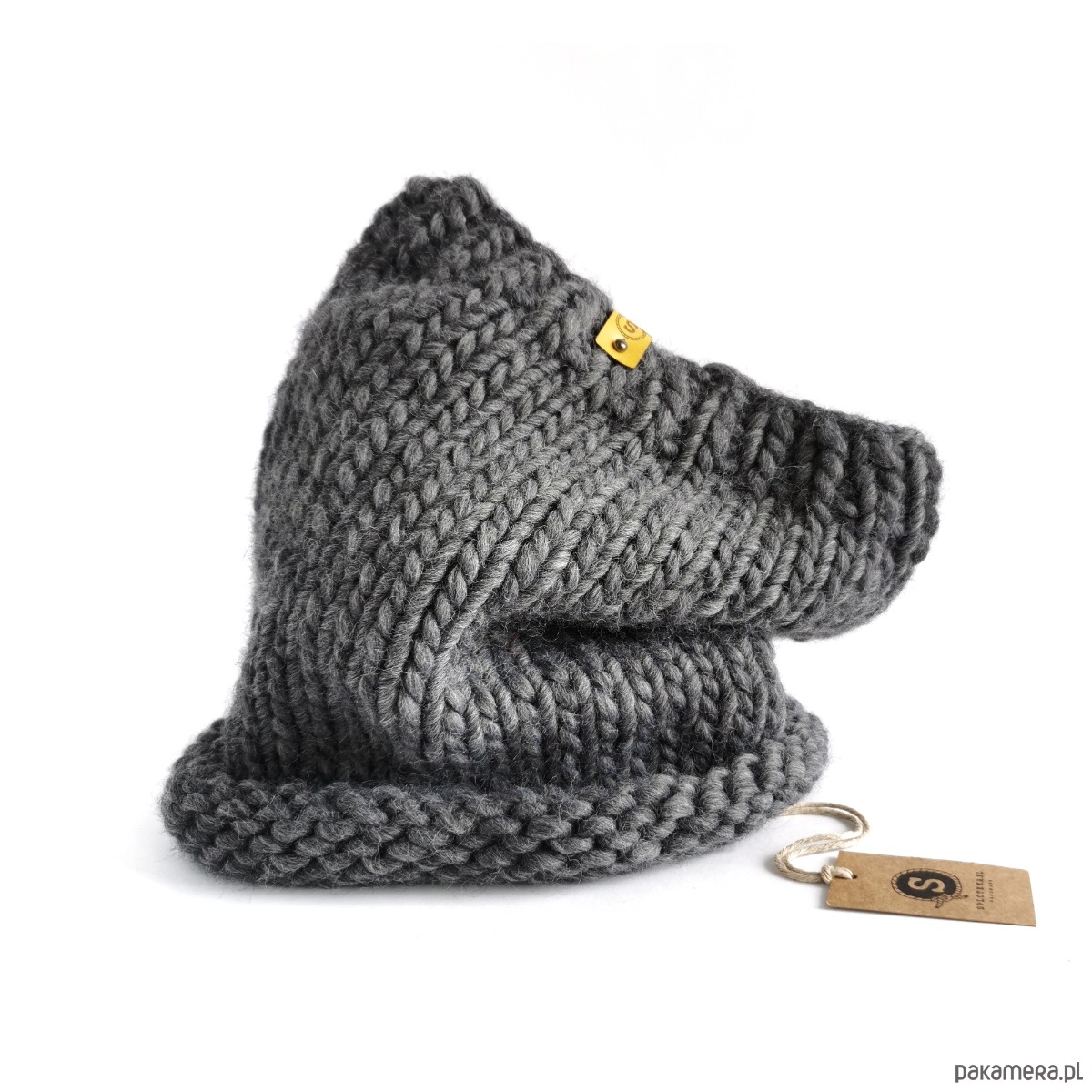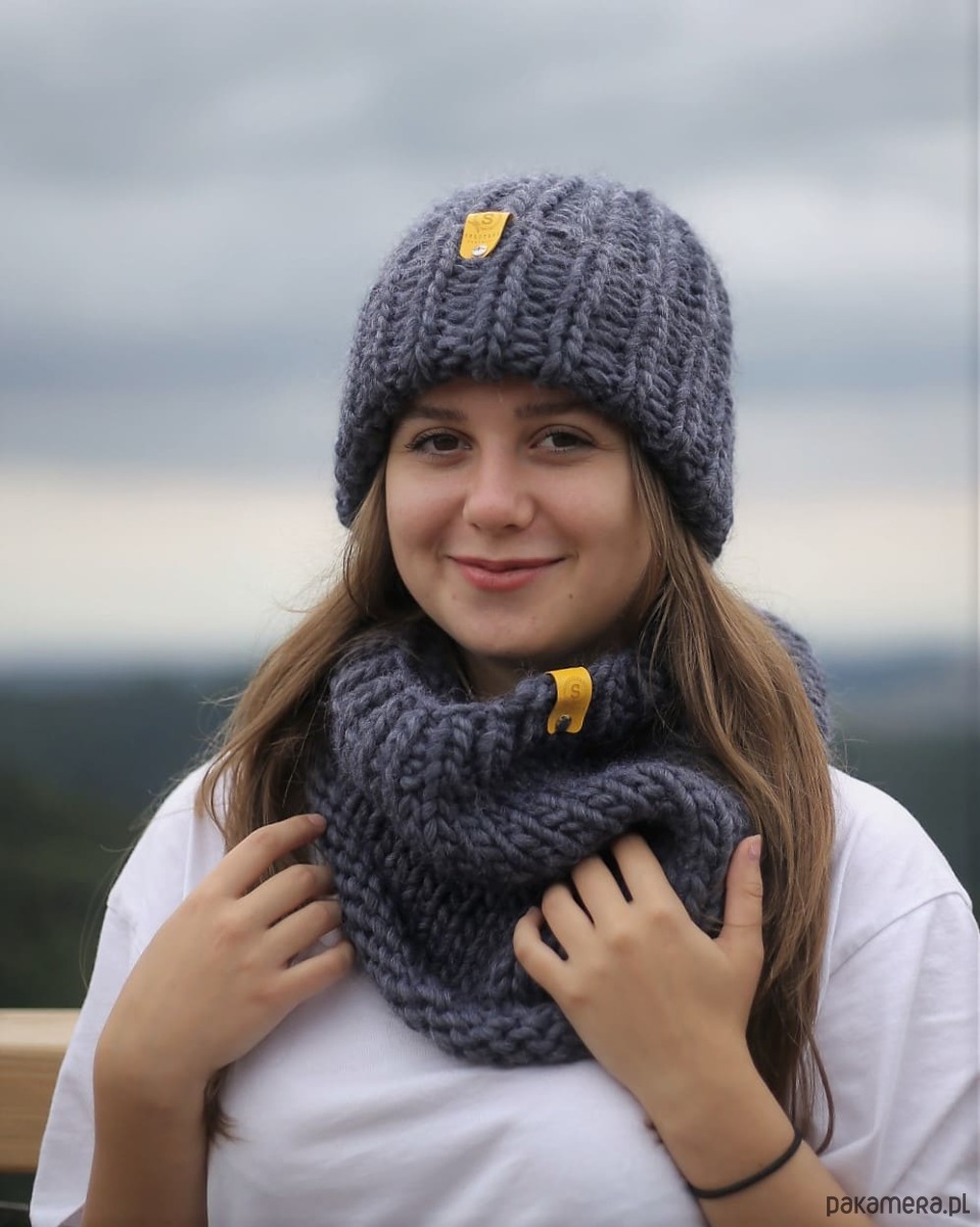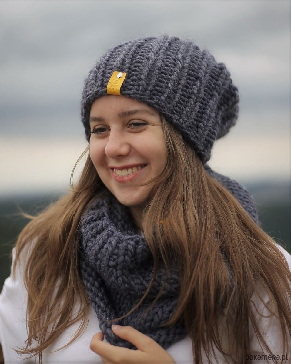 Wełniana czapka i komin WOOLY komplet zimowy grafitowy