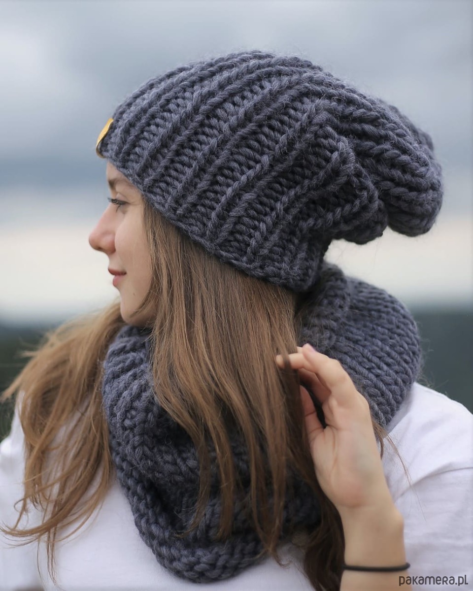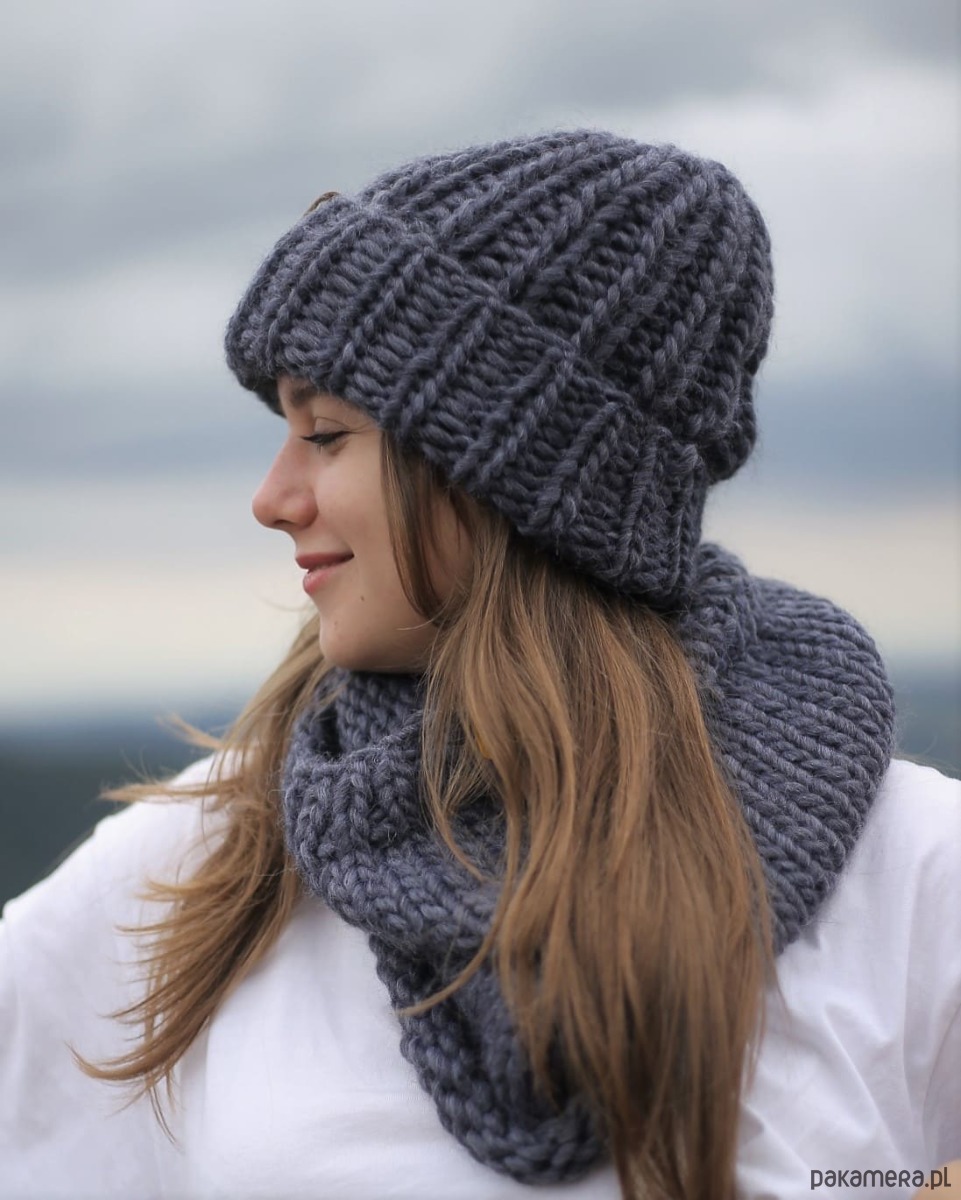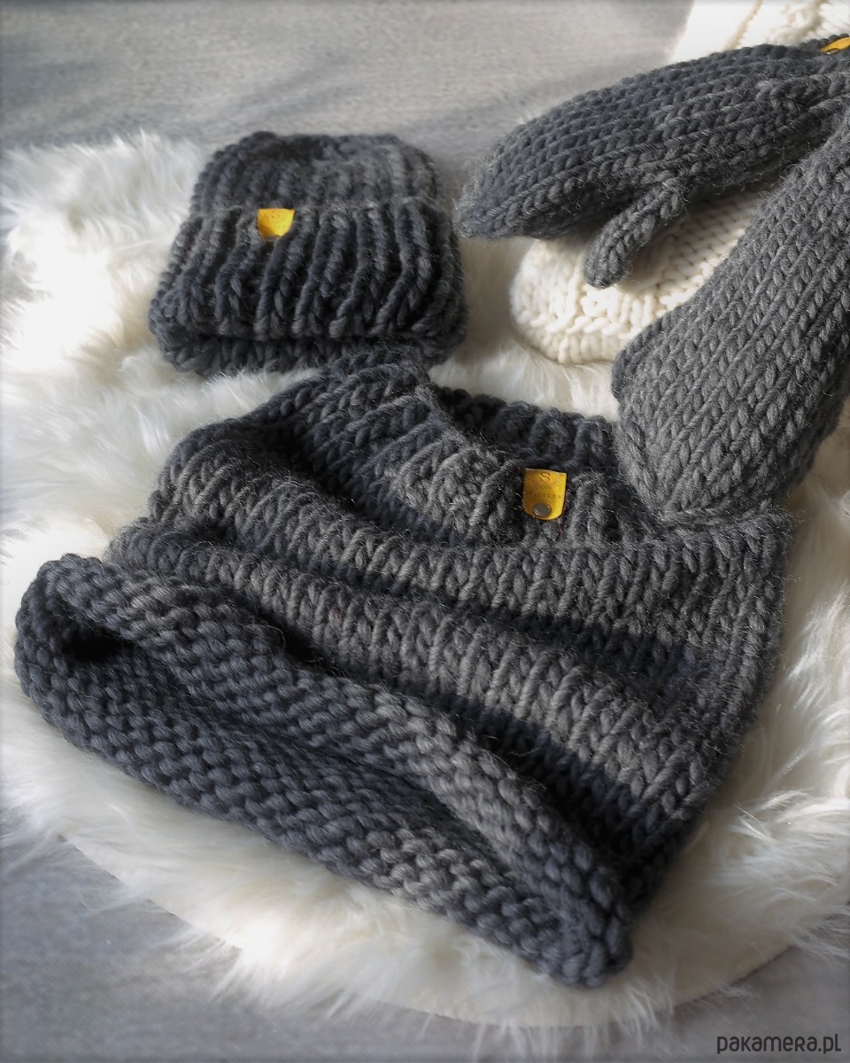 Wełniana czapka i komin WOOLY komplet zimowy grafitowy