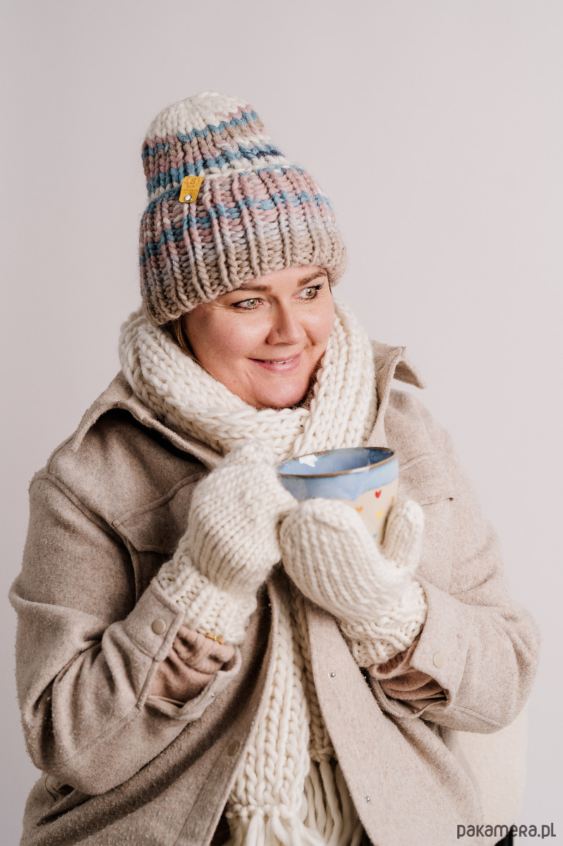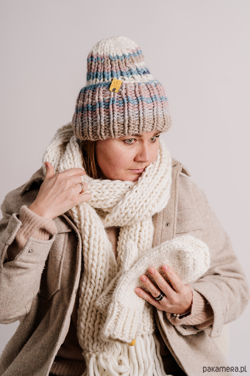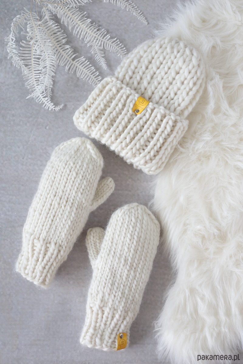 Wełniana czapka i rękawiczki z wełny i alpaki WOOLY złamana biel