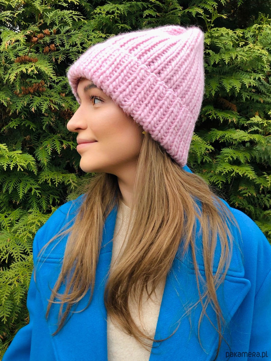 Prezentowana na zdjęciach czapka jest w kolorze pudrowego różu