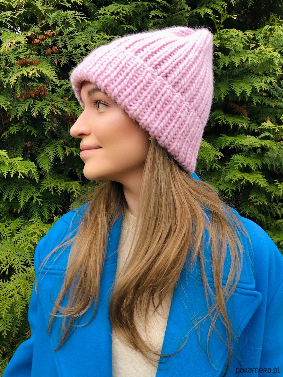 Wełniana czapka Lily maxi 100% wełna handmade ręcznie robiona