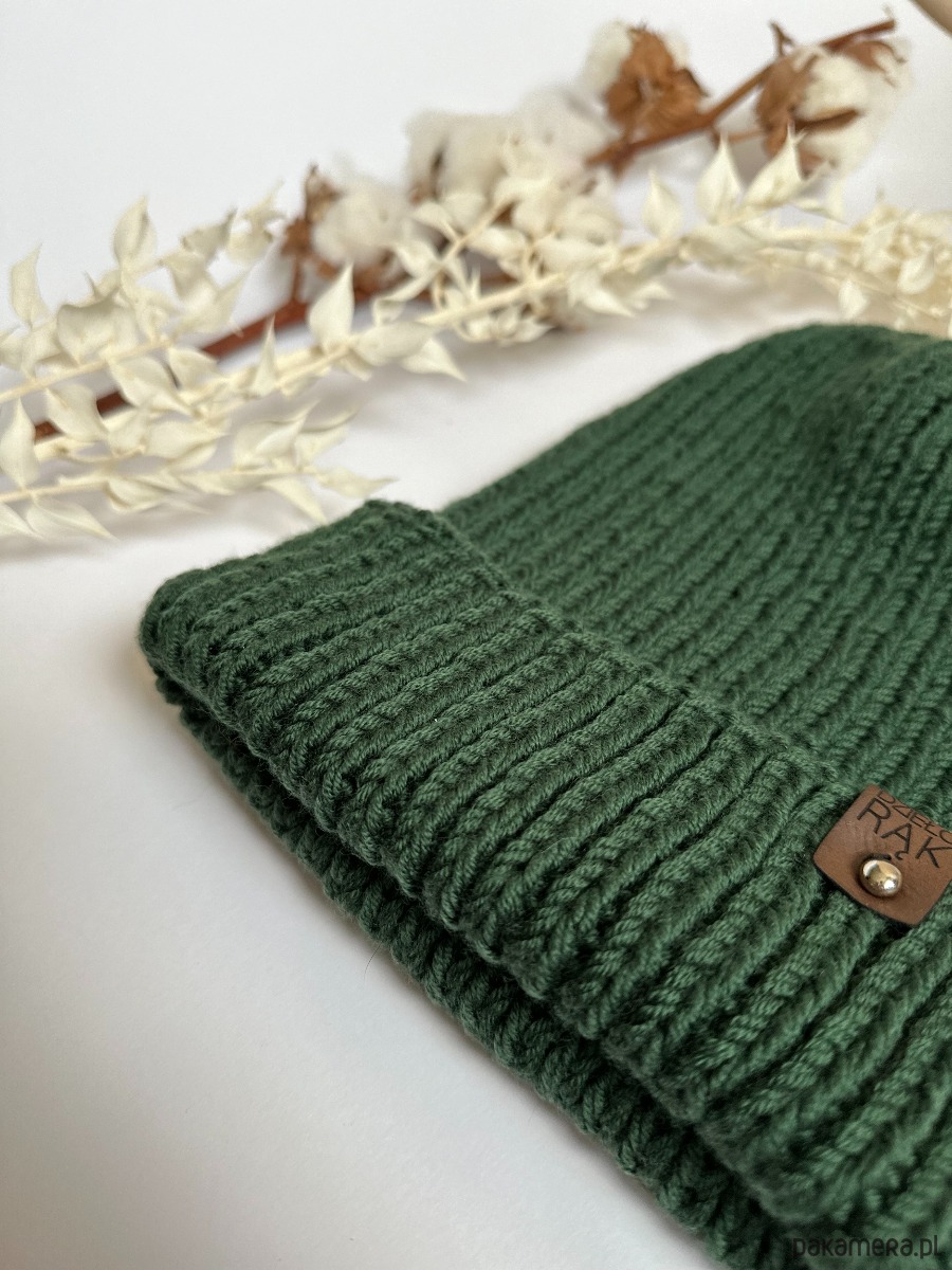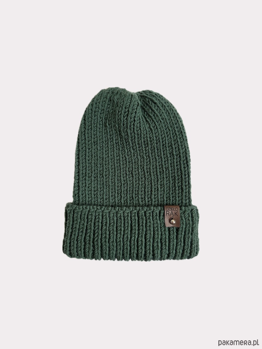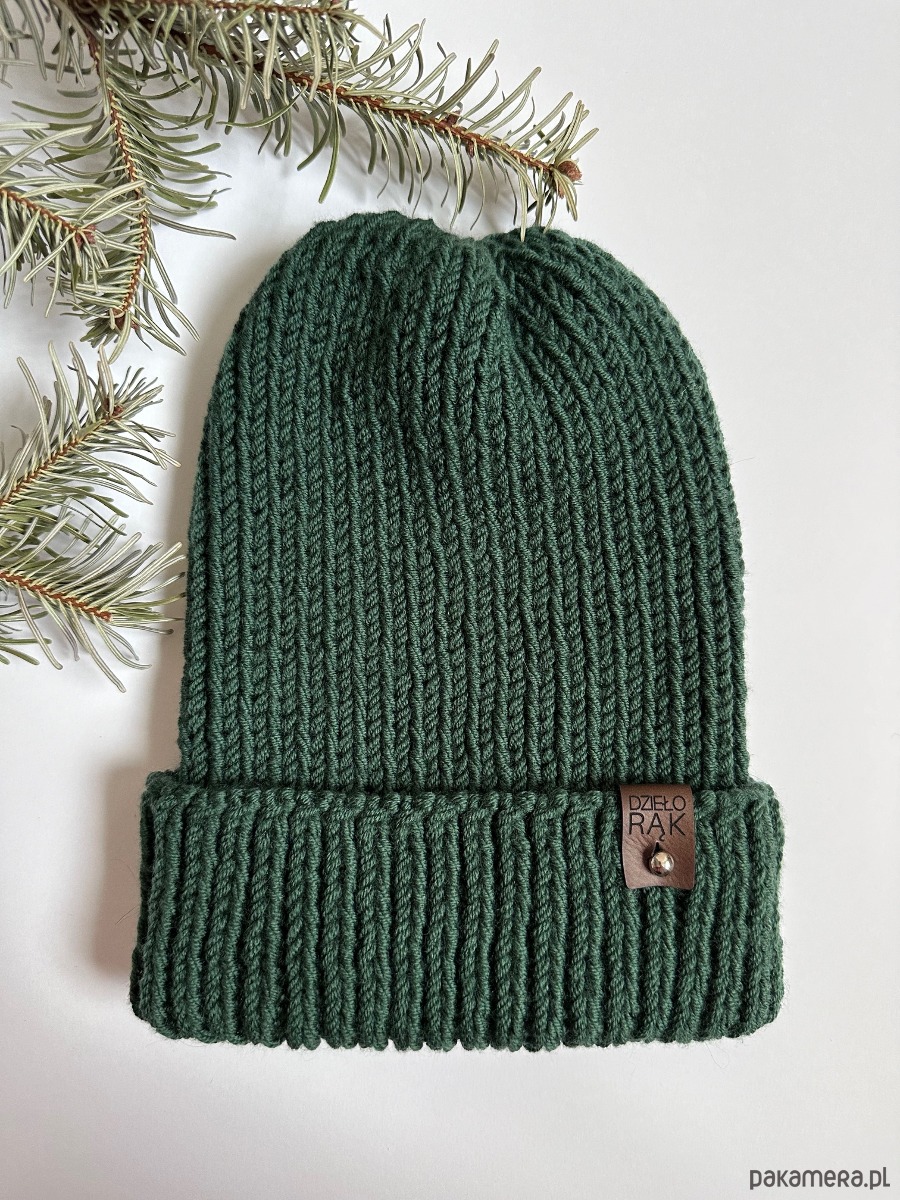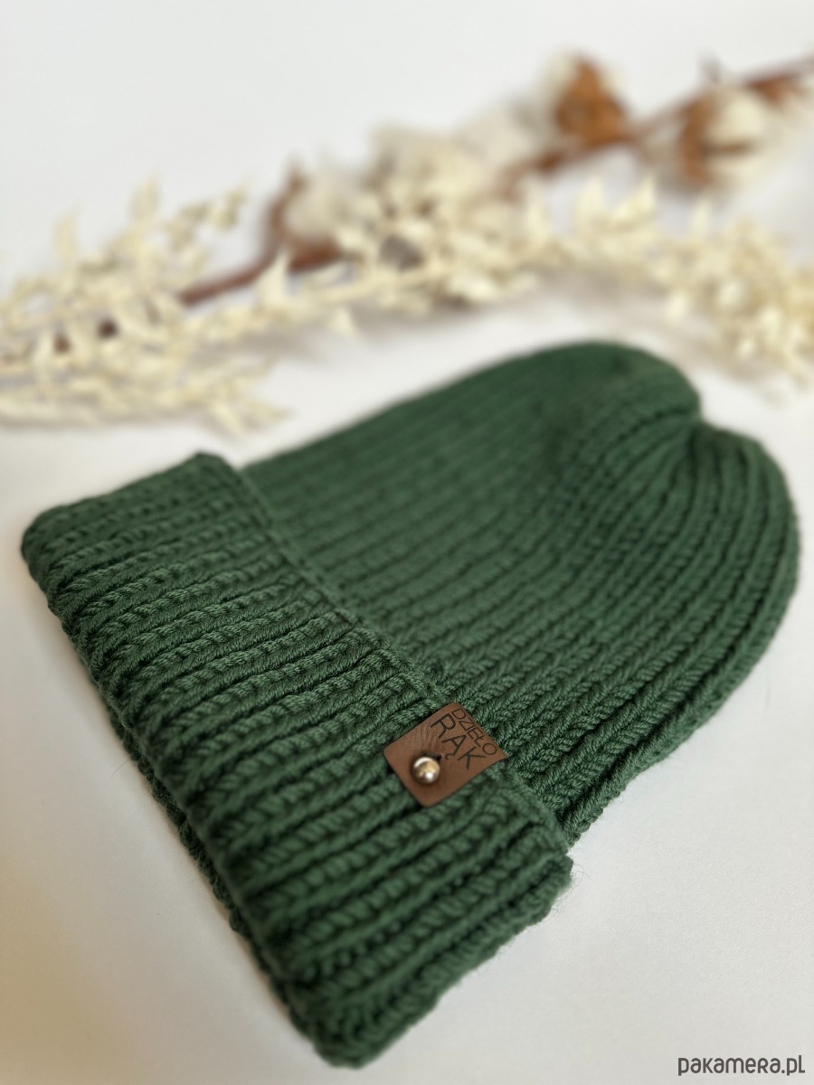 Średniej grubości czapka wełniana z wywinięciem, wykonana ręcznie z miękkiej, lekkiej i naturalnej 100% wełny merino.