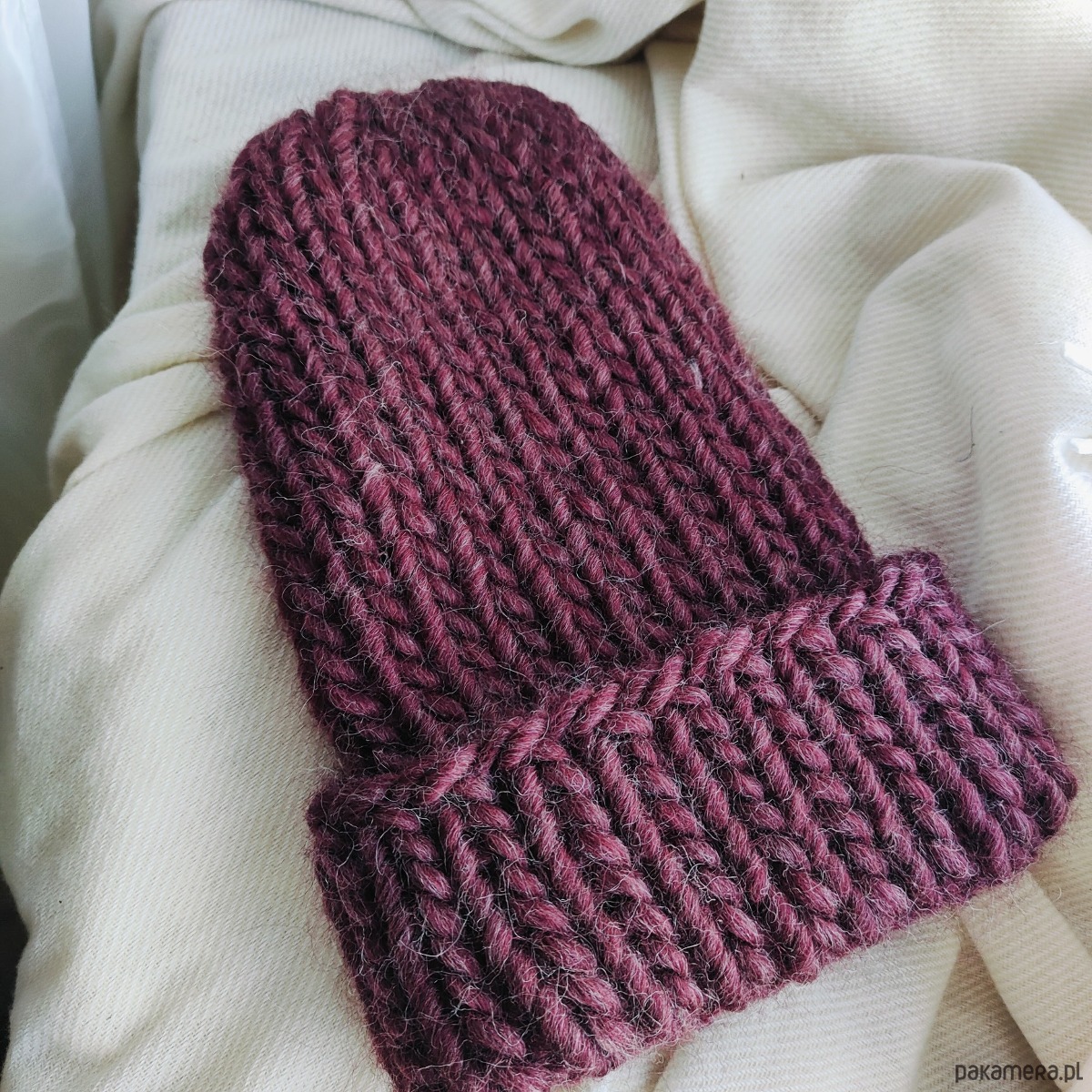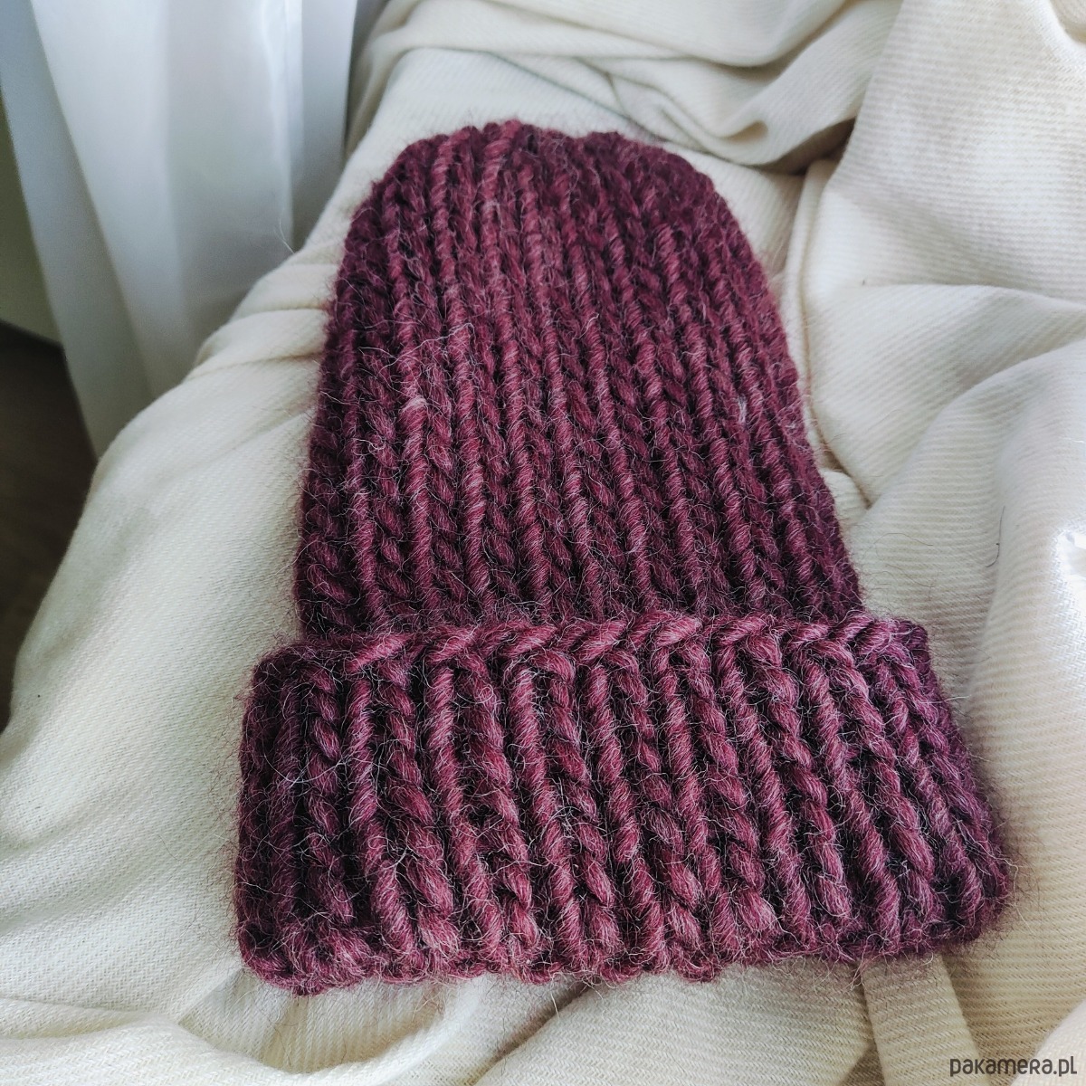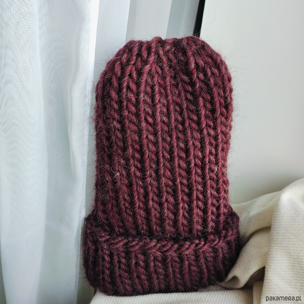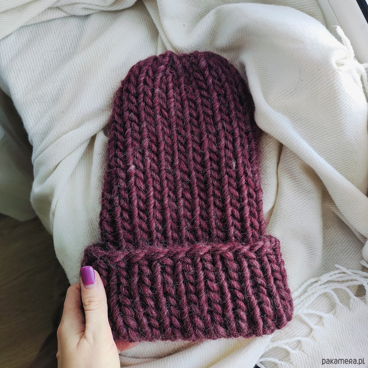 Wełniana czapka na drutach WOOLLY bordowa