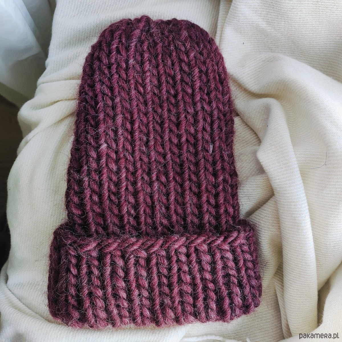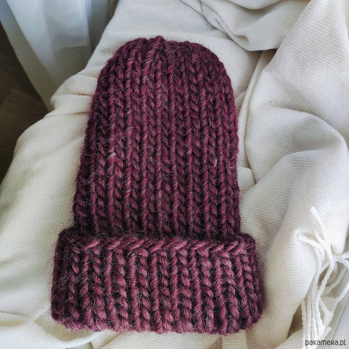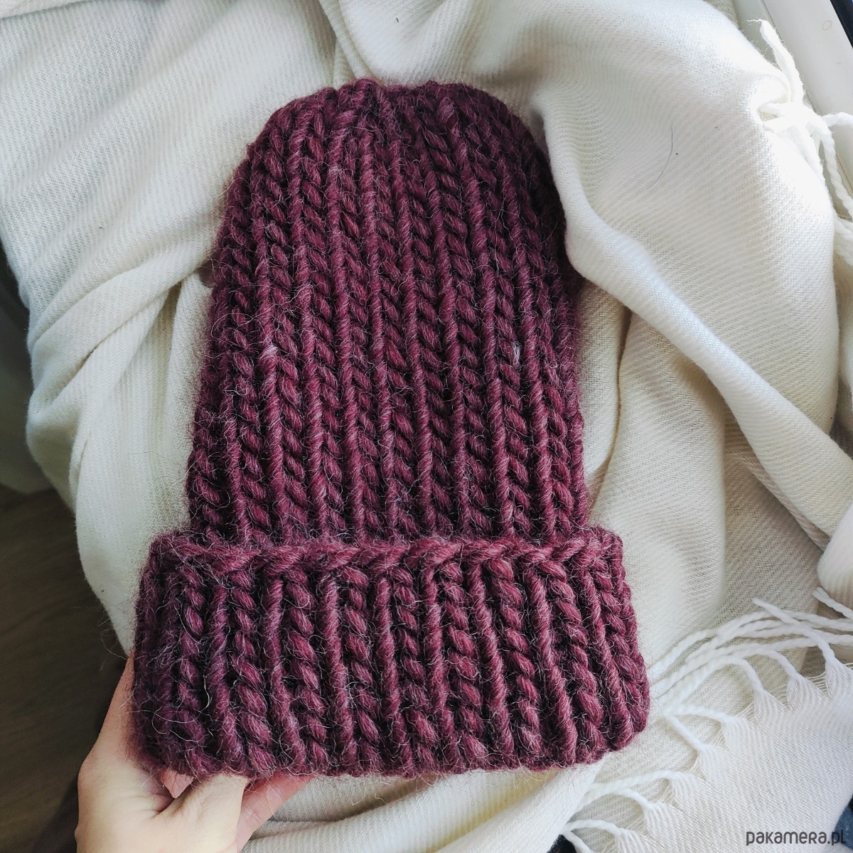 Wełniana czapka na drutach WOOLLY bordowa