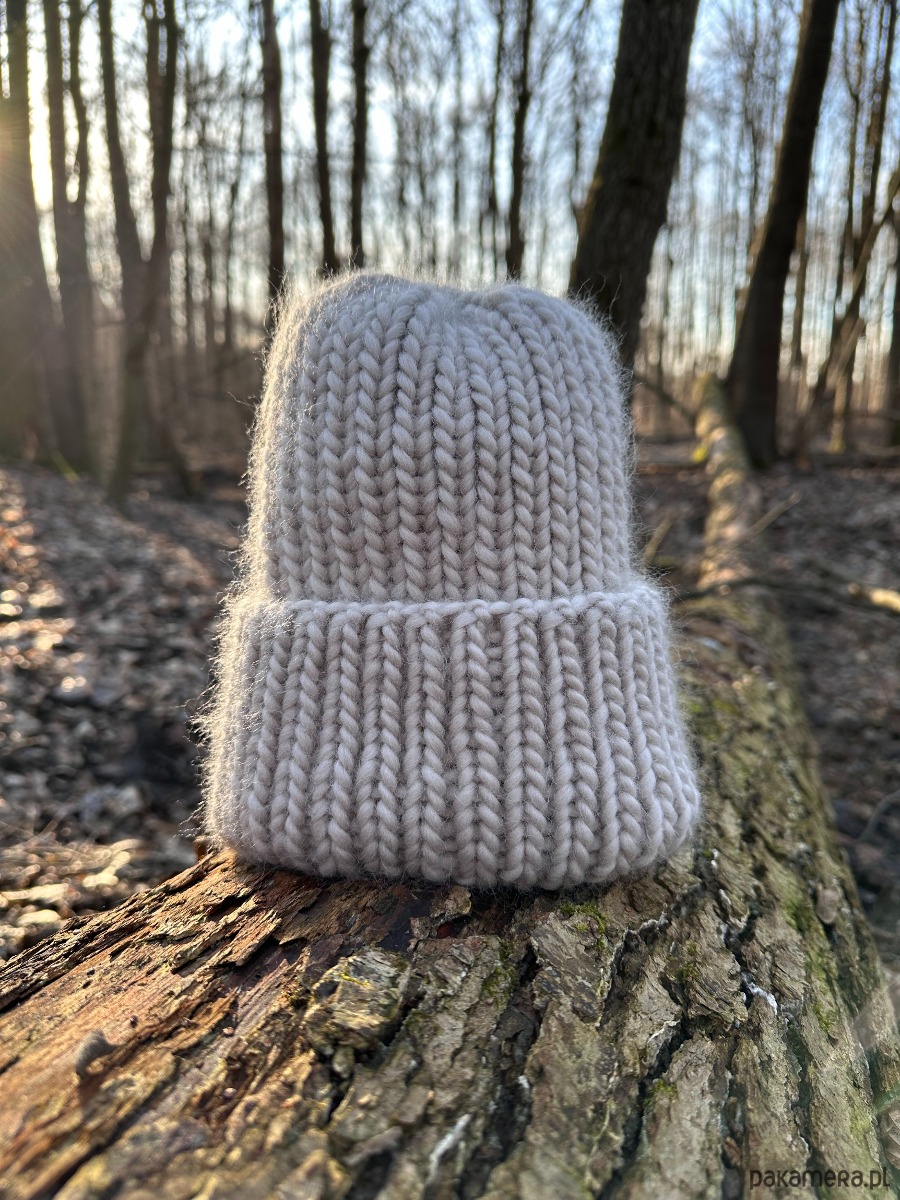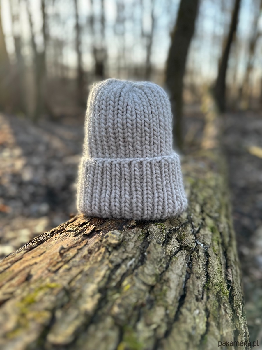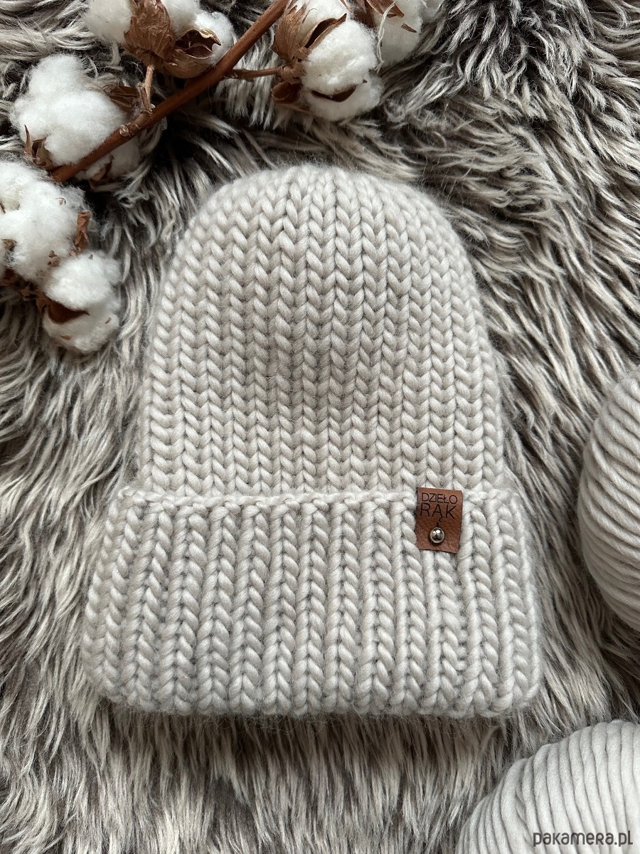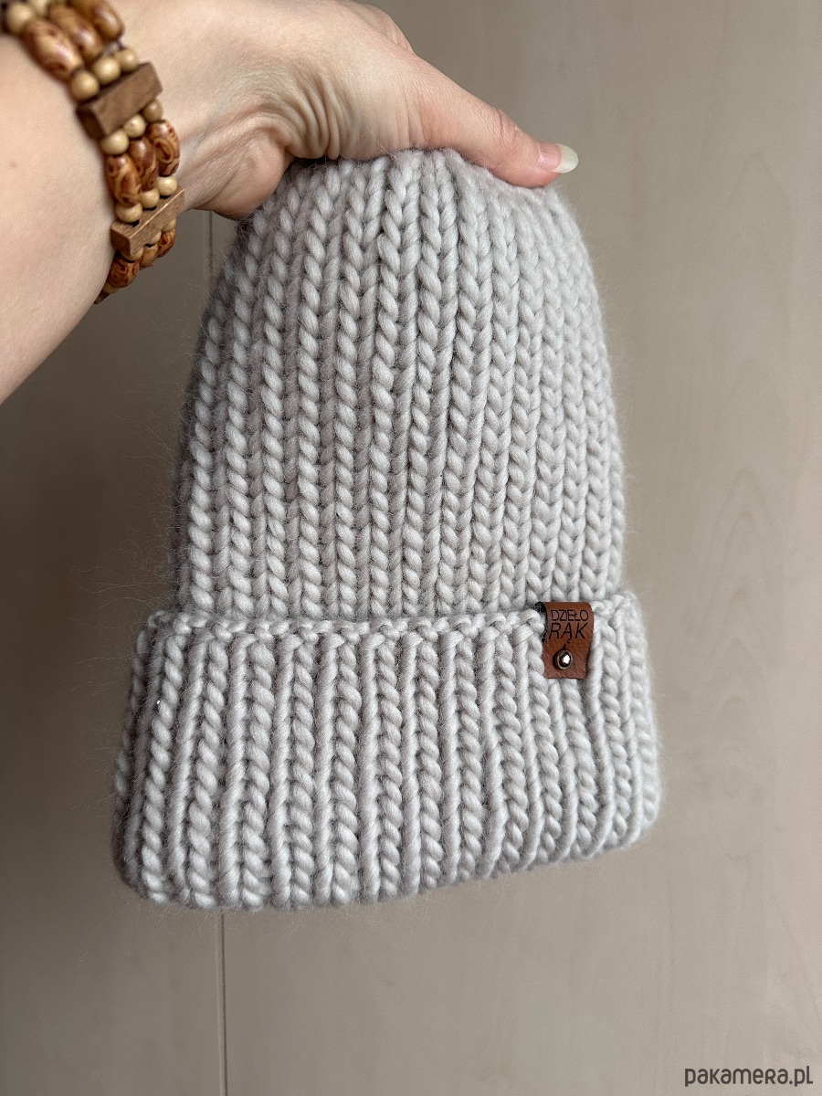 Zimowa czapka handmade w ponadczasowym, uniwersalnym kolorze midgałowym.