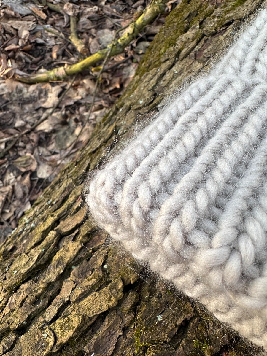 Zrobiona ręcznie na drutach z miękkiej i naturalnej 100% wełny peruwiańskiej z certyfikatami Oeko-Tex i Fair Trade.